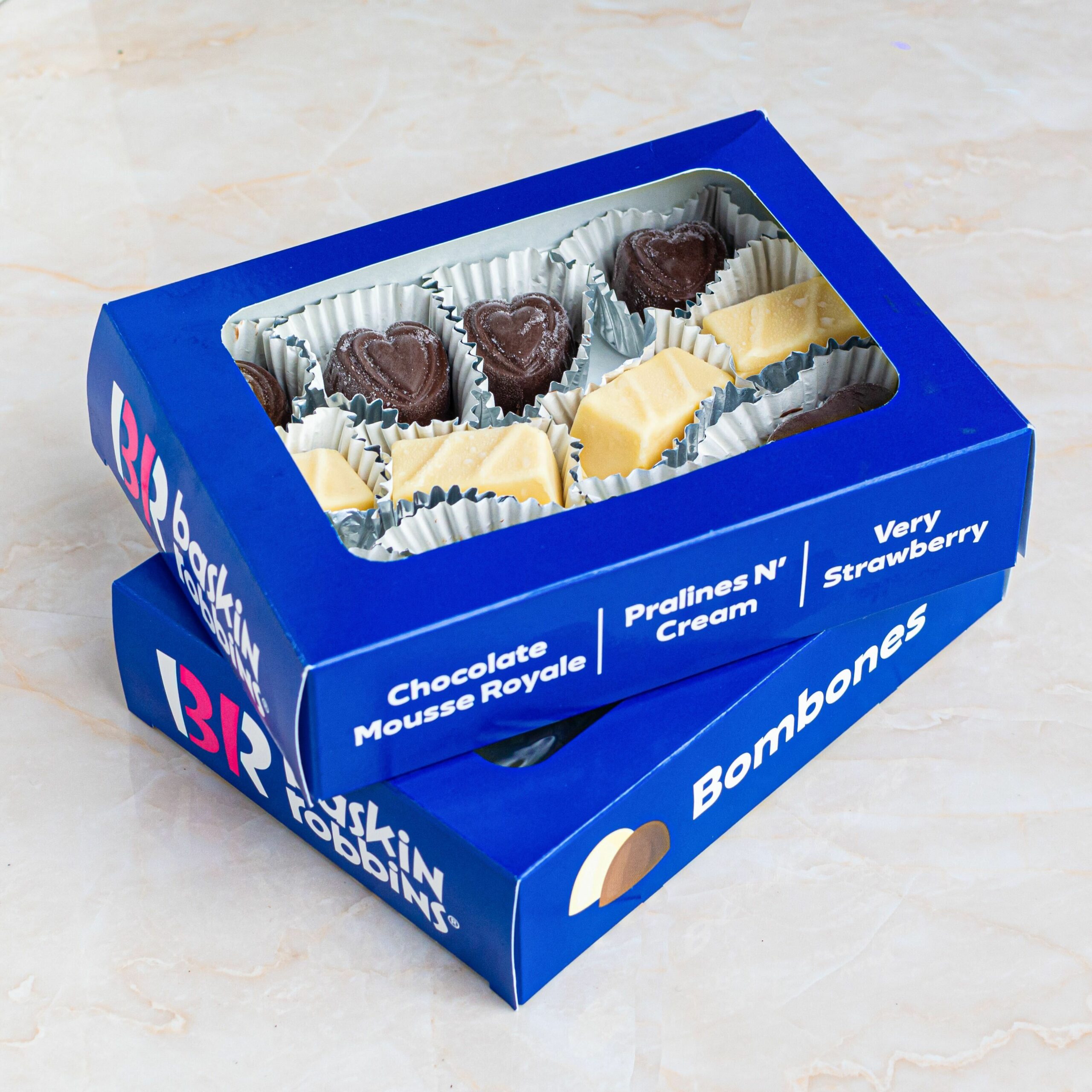 Junto al lanzamiento de las nuevas tartas y paletas, la franquicia pone a disposición de los amantes del postre frío unos sabrosos bombones de helado recubiertos de chocolate negro y blanco en forma rectangular y de corazón.