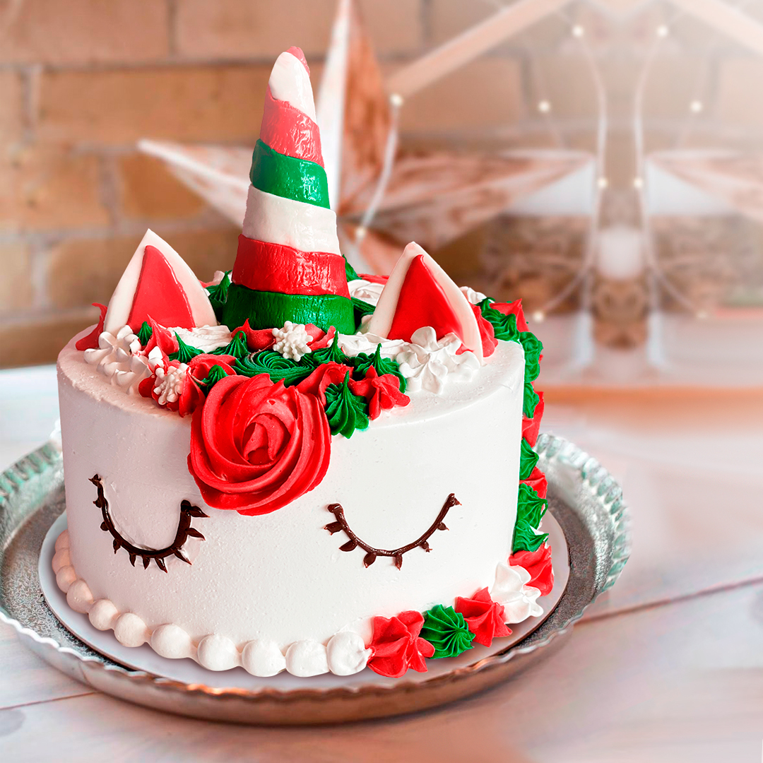 Un Santa Claus, árboles de Navidad, guirnaldas, bastones de caramelo, regalos, y hasta un unicornio están presentes en los espectaculares diseños de Baskin Robbins.