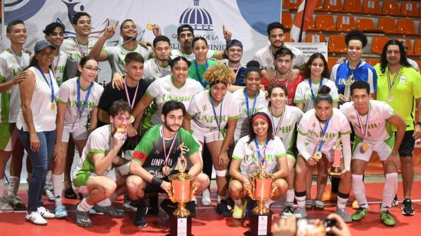 Los varones de la UNPHU golearon 3-0 al quinteto de la Universidad Iberoamericana (Unibe), que finalizaron en la segunda posición, mientras que el equipo femenino ganó el oro al superar 2-0 a la Pontificia Universidad Católica Madre y Maestra (PUCMM), que se llevó la plata.