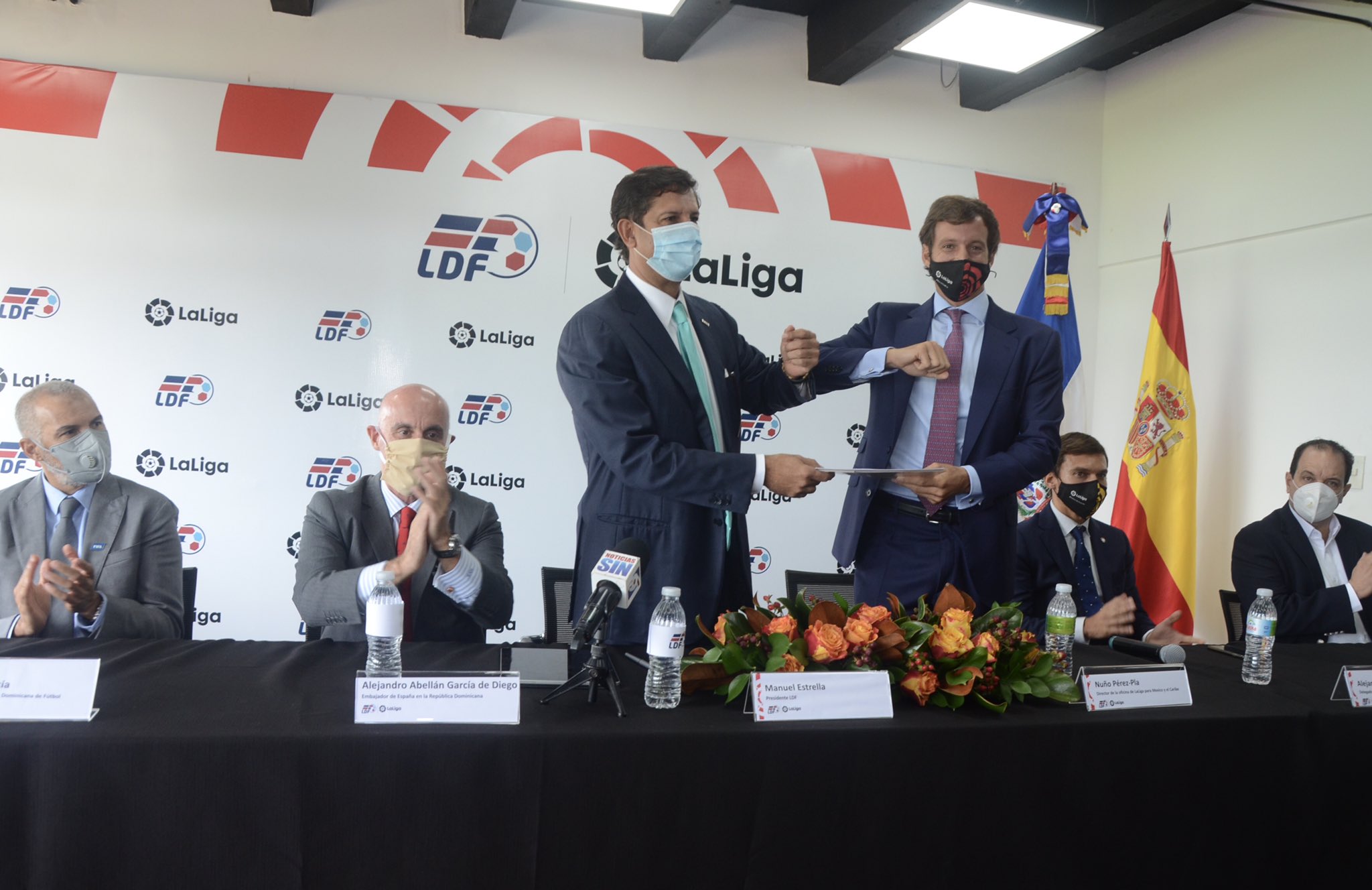 El acuerdo, el primero firmado por LaLiga de España, con una liga del Caribe, se logró gracias a la intermediación de la Fedofúbol, que preside Rubén García, contactado por las autoridades de LaLiga, a quienes dirigió hasta, Manuel Estrella, presidente de a LDF.