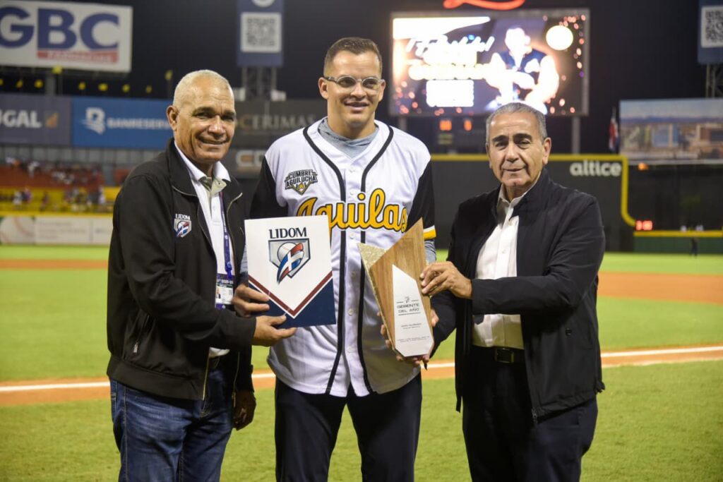 La entrega de los premios estuvo encabezada por el presidente de las Águilas Cibaeñas, Víctor García Sued, y el coordinador de operaciones de LIDOM, Valentín Contreras, quien felicitó a los premiados y resaltó el impacto de su trabajo en el torneo.