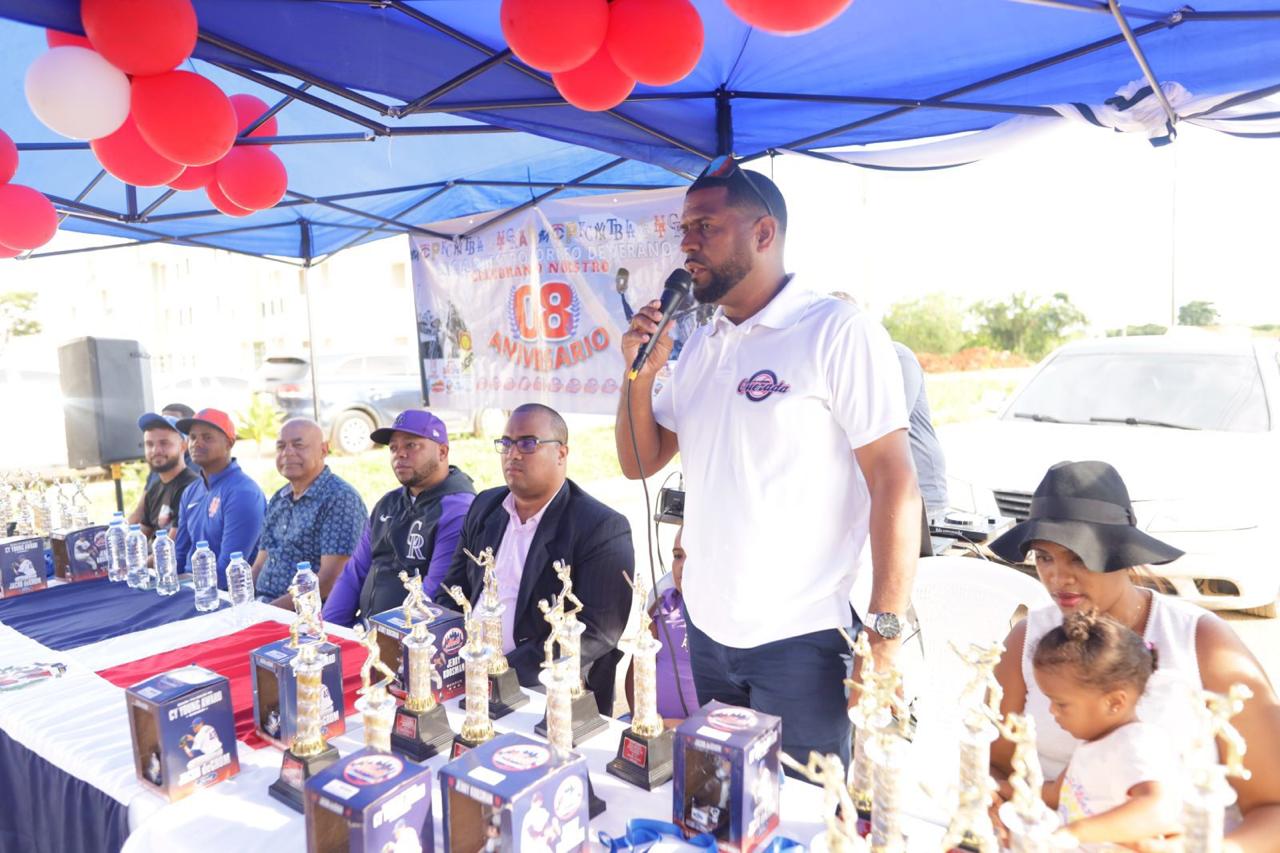 Con las notas del Himno Nacional y una invocación a Dios Todopoderoso realizada por Juan Pablo Torres Vinit, se dio inicio a la ceremonia de premiación del Torneo de Béisbol Verano 2024, organizado por la Liga Deportiva Quezada. Este evento reconoció a los jóvenes atletas y a los patrocinadores que apoyaron el torneo.