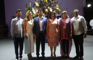 La vicepresidenta de la República, doctora Margarita Cedeño, acompañada del alcalde del Distrito Nacional, David Collado, y de los organizadores de Dominicana Moda Sócrates Mckinney, Fidel López, Mirka Morales, así como de la empresaria Isabel Turull, en el inicio del evento este miércoles, en la Fortaleza Ozama.