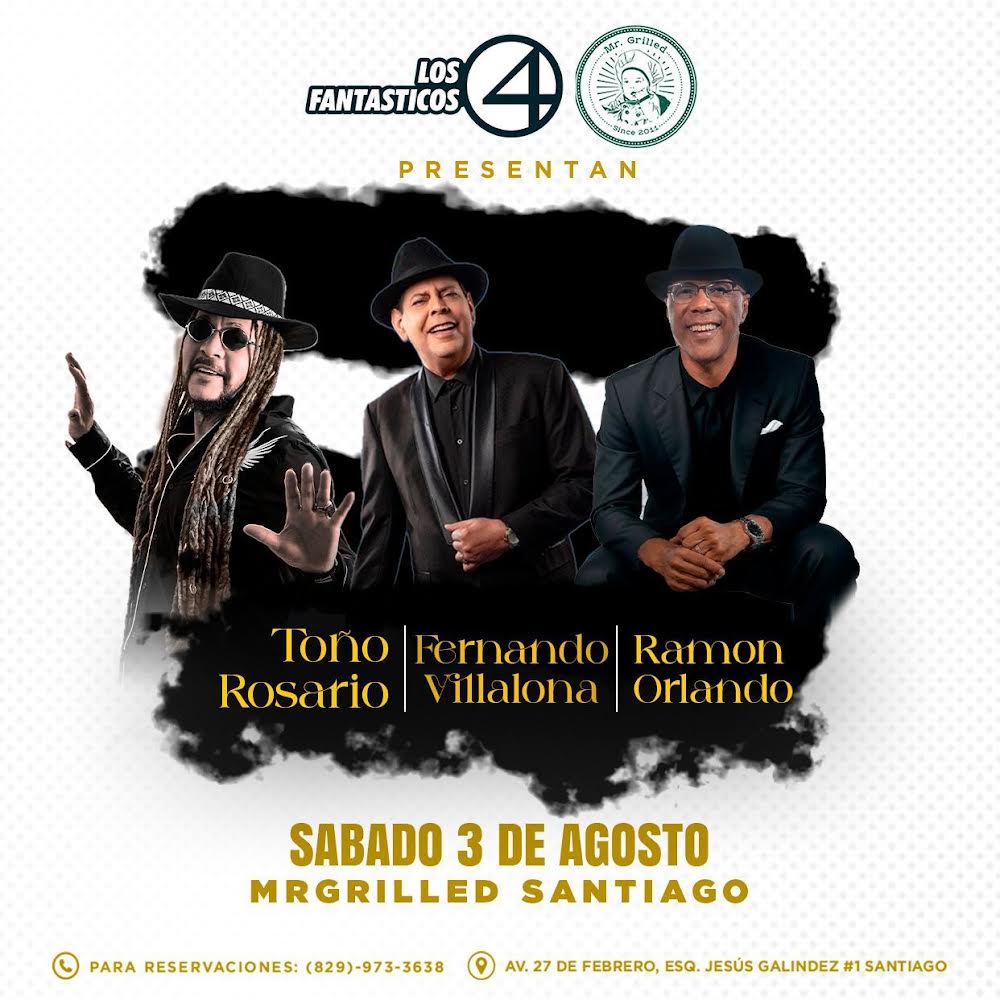 La compañía Los 4 Fantásticos ha anunciado un espectacular concierto de merengue que contará con la participación de tres de las más grandes leyendas del género: Toño Rosario, Fernando Villalona y Ramón Orlando.