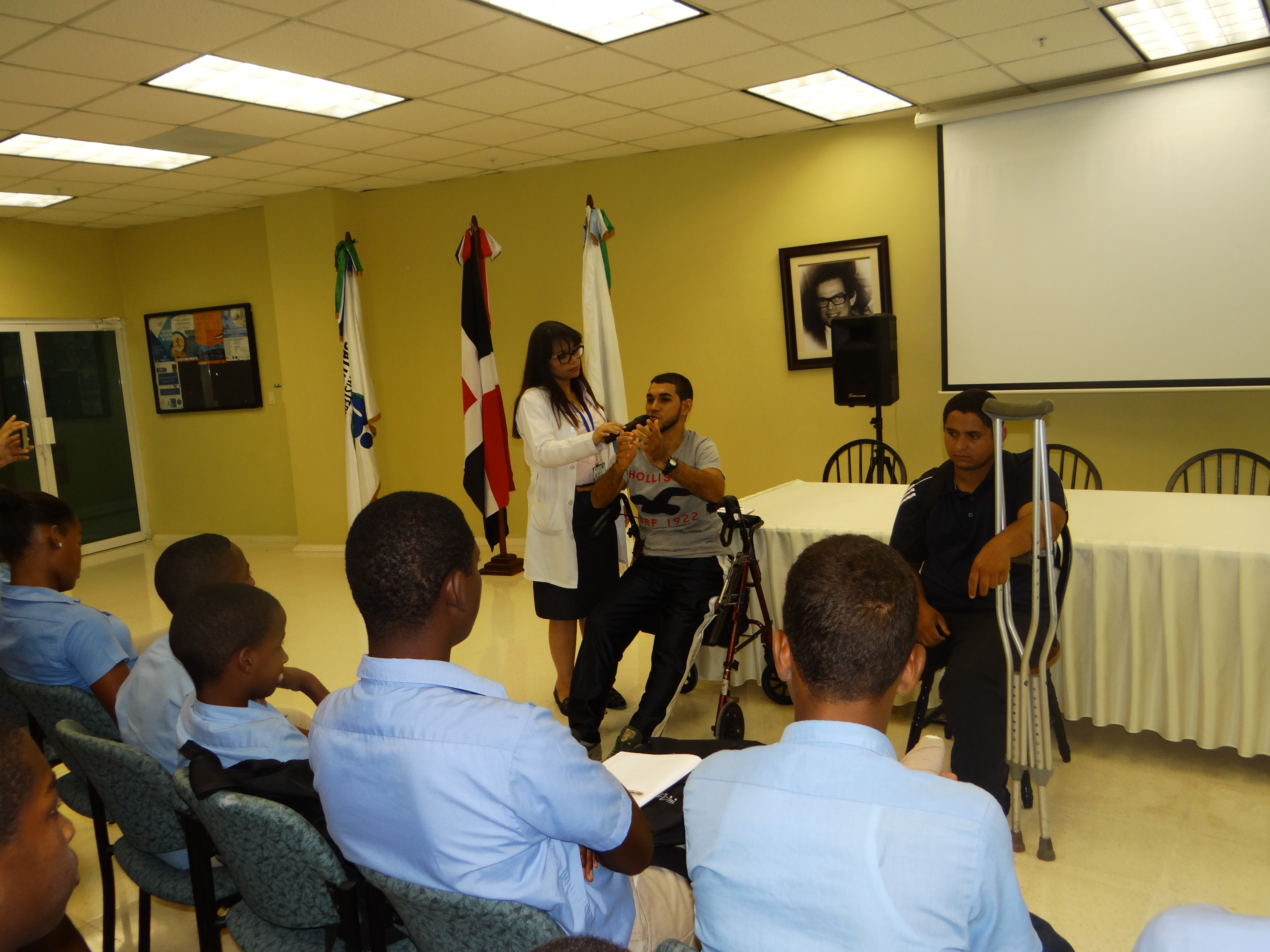 Los participantes escucharon el testimonio del paciente Melvin Feliz Lora, quien lleva tres años incapacitado luego de un choque con otro motorista, el cual asegura murió al instante, quien dijo que el choque ocurrió luego de que ingiriera alcohol y fumara hooka, perdió prácticamente el conocimiento.