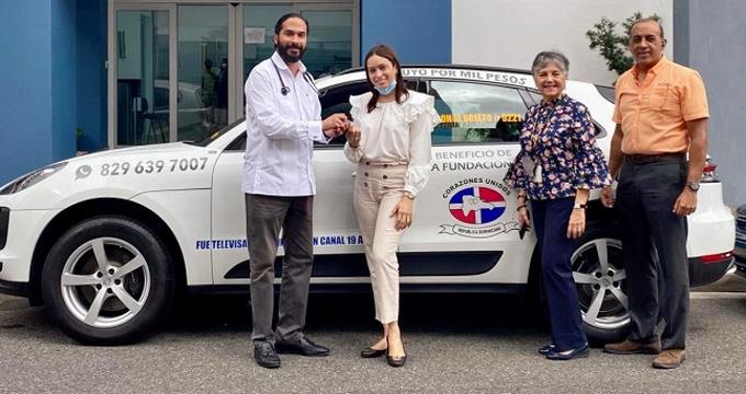 Luis Cuello, director de Corazones Unidos junto a Vanessa Rodríguez, subdirectora y Ram Mella director de LottoCar y Coupons Aid entregaron la llave, explica un material de prensa.