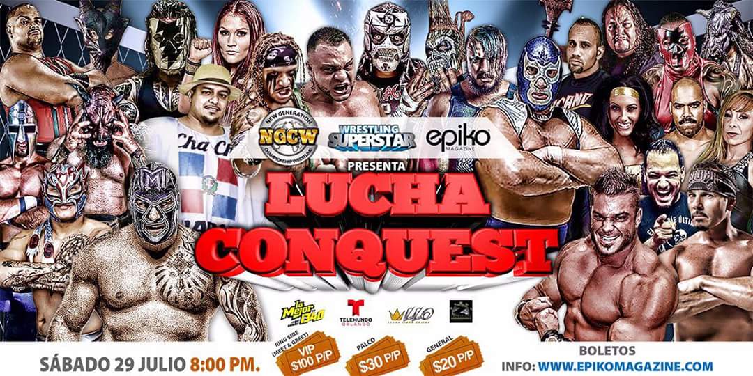 (Kissimmee Fl. USA)–Wrestling Superstar, New Generation Championship Wrestling (NGCW) y EPIKO MAGAZINE presentan Lucha Conquest, el sábado 29 de julio a las 8:00pm, en el Florida Fire Frogs Stadium en Kissimmee, FL, USA, en una producción de Hugo Savinovich «En Español NADIE Lo Hace Mejor».