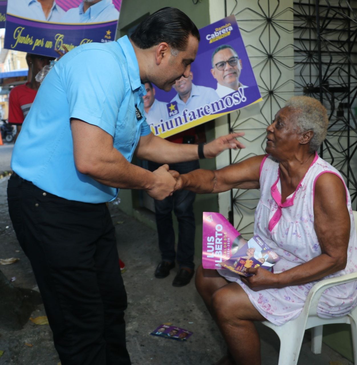 Sin embargo, uno de los momentos más curiosos y emotivos ocurrió en la calle Tamboril, cuando una abuela cariñosa, Doña Carmen, sostenía una video llamada con un familiar desde España. Luis Alberto, siempre dispuesto a escuchar y compartir, se unió a la conversación para exponer sus planes y expectativas para Santo Domingo Este.
