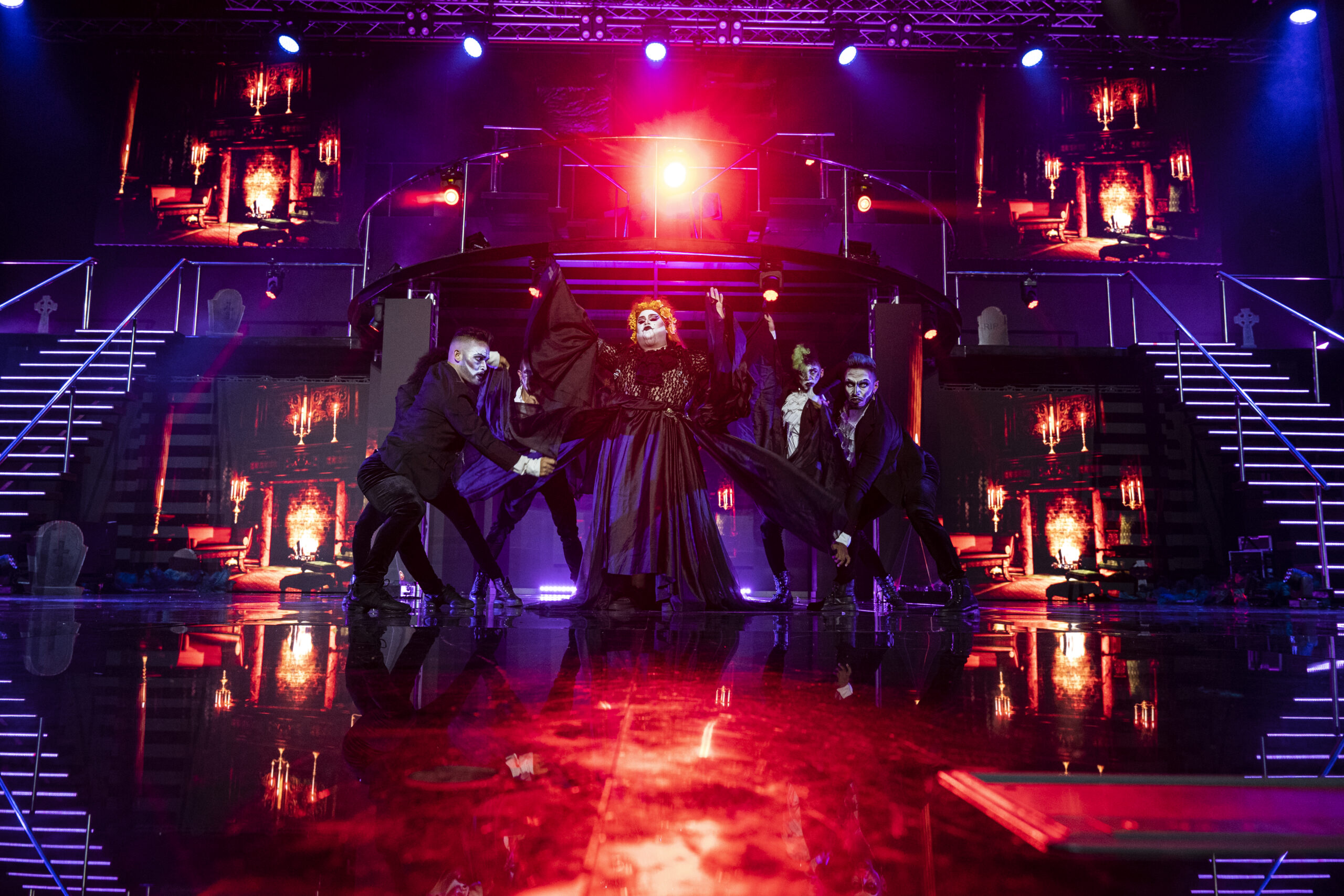 El musical tiene una duración de 50 minutos y consta de 12 actos. Inicia con el opening Luna de Sangre-Transformación, para dar paso a la gladiadora, emperatriz de la noche, chicas malas, liberadora, pesadillas, gobernante, dominadora, alma de la fiesta, princesa oscura, toros y toreros, y el gran cierre somos nosotros.