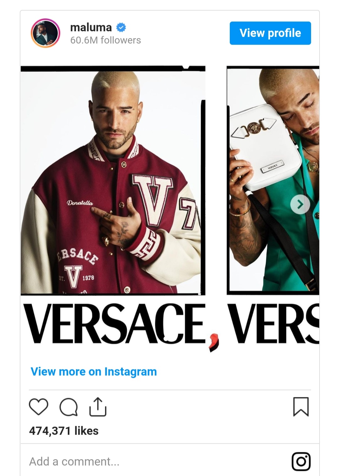“Maluma ha sido durante mucho tiempo parte de mi familia Versace y estoy muy emocionada de que protagonice su primera campaña con Versace”, expresó a través de un comunicado Donatella Versace. A eso, la vicepresidenta del grupo agregó que le encantó la forma en la que el cantante jugaba con la cámara y posaba frente al lente, tan a gusto como si estuviera en un estadio lleno de gente.