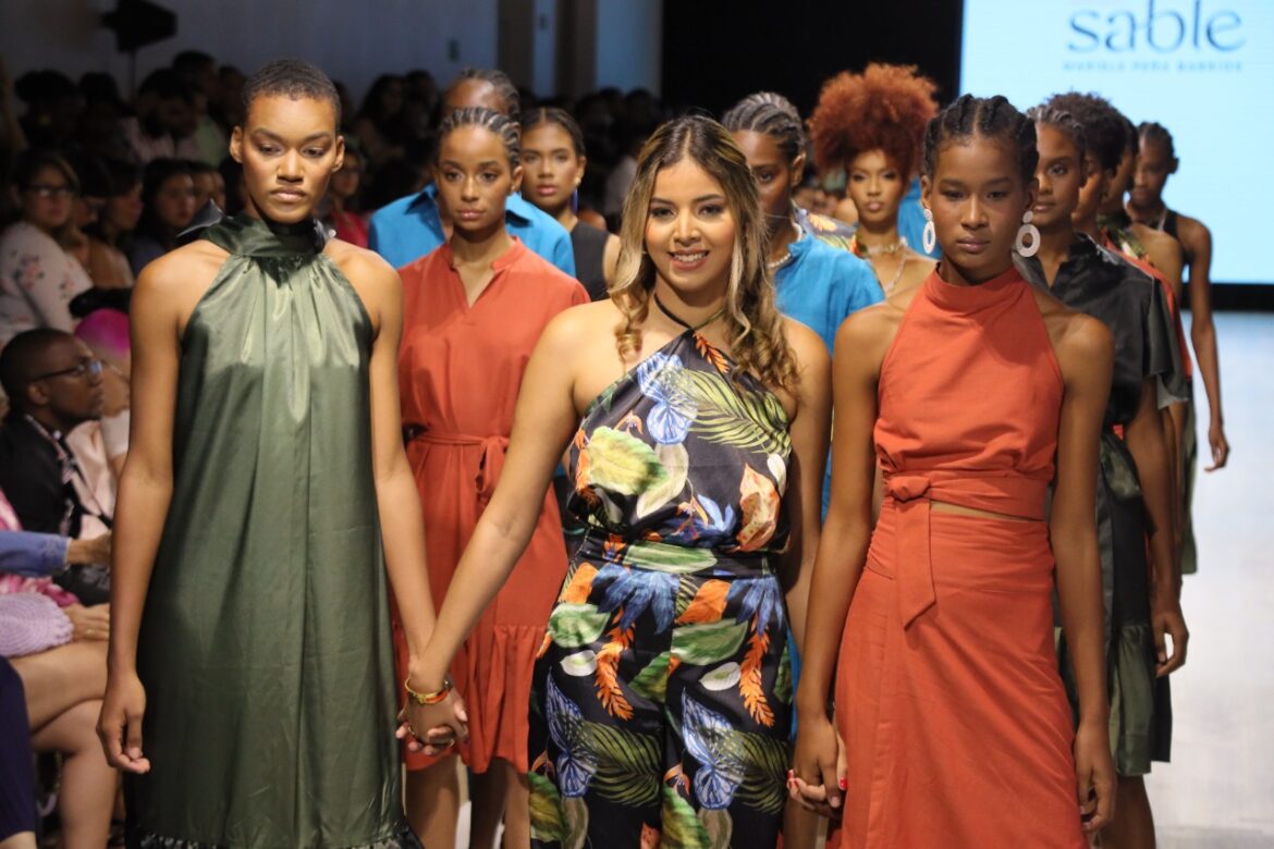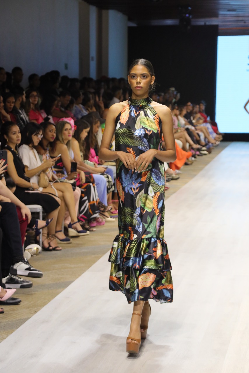 La diseñadora emergente Mariela Peña presentó una colección inspirada en nuestro medio ambiente representando la belleza de nuestros bosques, flora y océanos.