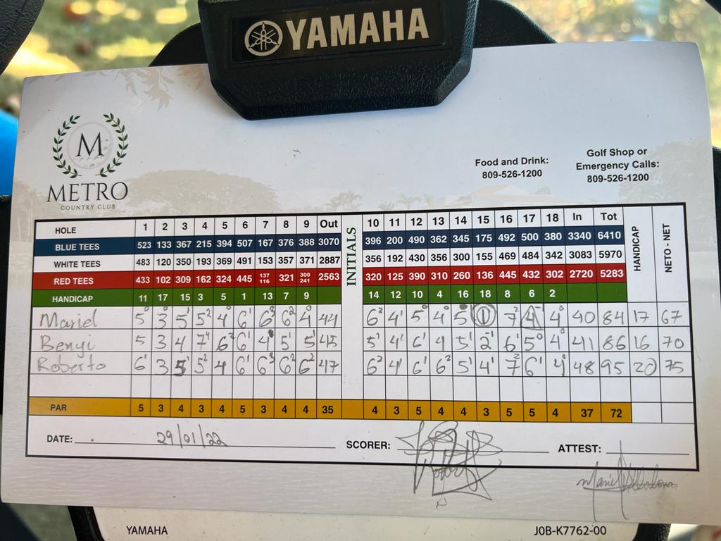 Compartiendo con amigos un día de golf, la hija de Rafael Villalona Calero tiró 84 bruto y 67 netos.