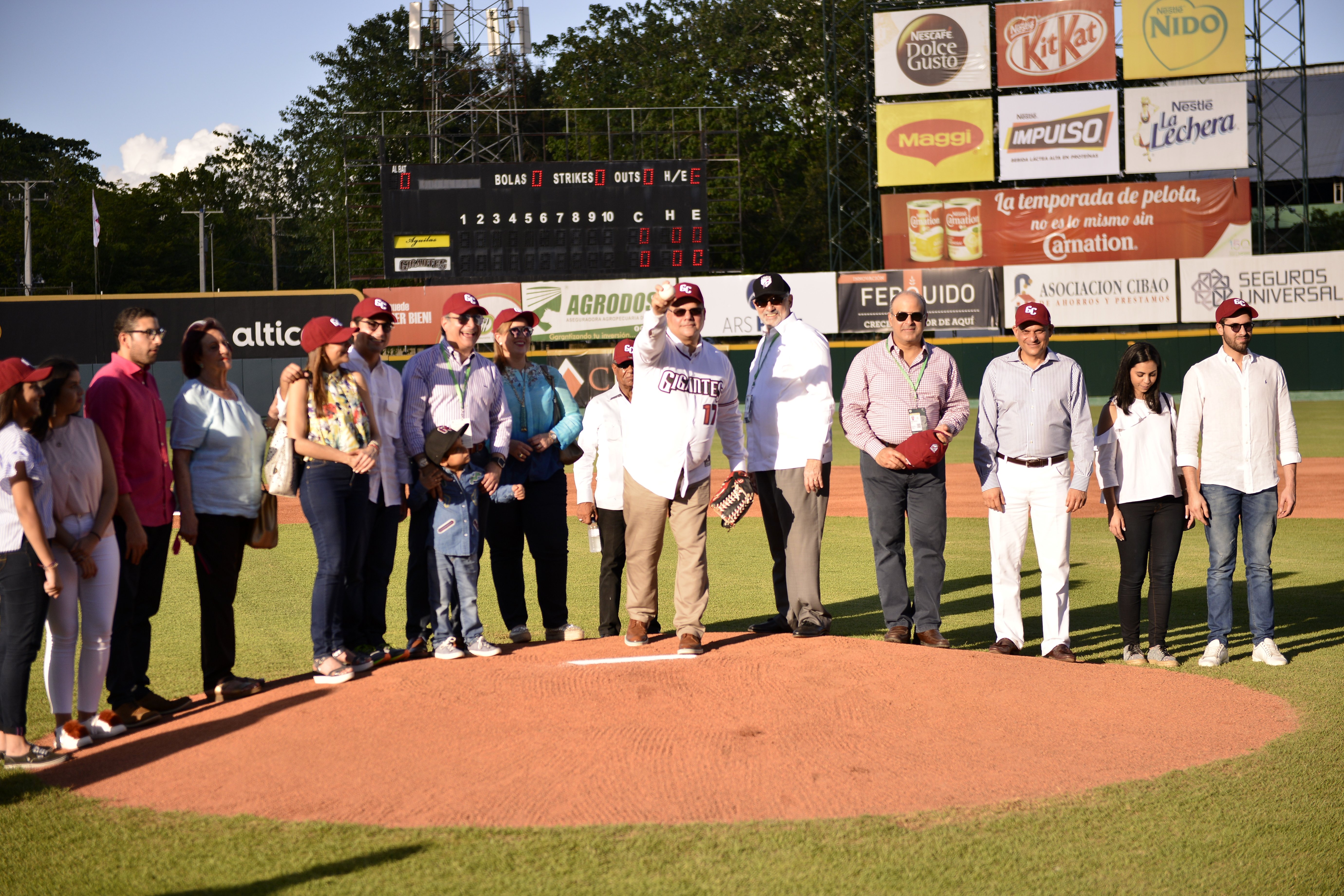 En el acto inaugural de la temporada de béisbol invernal, en el estadio Julian Javier, encabezado por Samir Rizek, presidente de los Gigantes del Cibao se dio formal inicio a la temporada de béisbol. En la casa de los Gigantes, la familia Rizek acompañada de diversas personalidades del ámbito deportivo, oficial y empresarial celebraron una vez el arranque de esta fiesta deportiva en la que Raul Antonio Rizik Yeb, vicepresidente ejecutivo del Grupo Mejia Arcala, acompañado de su familia, tuvo a cargo el lanzamiento de la primera bola.