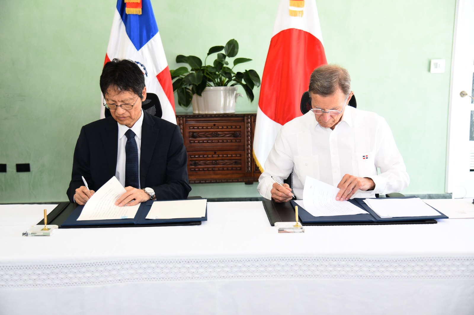 Santo Domingo de Guzmán, República Dominicana. – El ministro de Relaciones Exteriores, Roberto Álvarez, y el embajador de Japón en República Dominicana, TAKAGI Masahiro, firmaron un Canje de Notas Diplomáticas que permitirá al país acceder a una cooperación reembolsable de seis mil seiscientos sesenta millones de yenes (¥6,660,000,000), equivalentes a unos cuarenta y cuatro millones de dólares (US$44 MM) a través de la Agencia de Cooperación Internacional del Japón (JICA), para implementar el Proyecto de Mejoramiento de Gestión Integral de Residuos Sólidos.