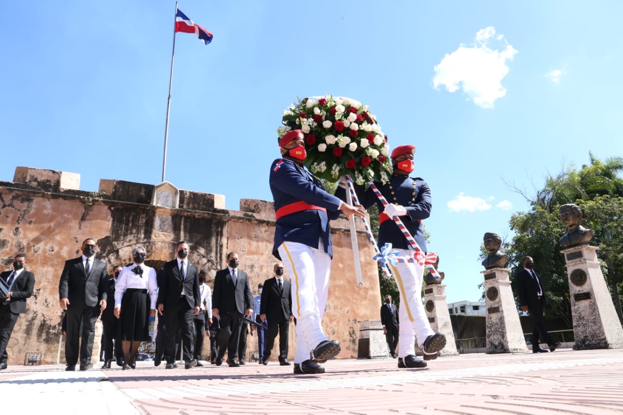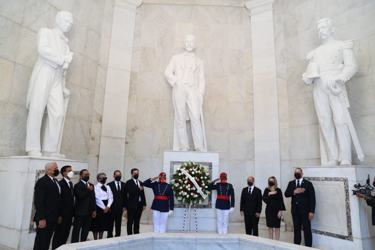Posteriormente, las autoridades del Poder Judicial depositaron una ofrenda floral en el Altar de la Patria.