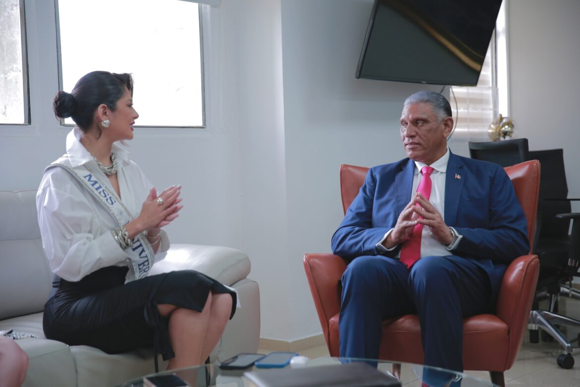 El ministro de Interior y Policía Jesús Vásquez Martínez recibió la visita de la Miss Universo 2023 Sheyniss Palacios y la Miss República Dominicana 2024, Celinée Santos, con quienes conversó sobre los programas para enfrentar la delincuencia y la violencia, como “De Vuelta al Barrio” y “Líderes Mediadores de Conflictos”, que forman parte de la Estrategia Integral de Seguridad Ciudadana “Mi País Seguro”.