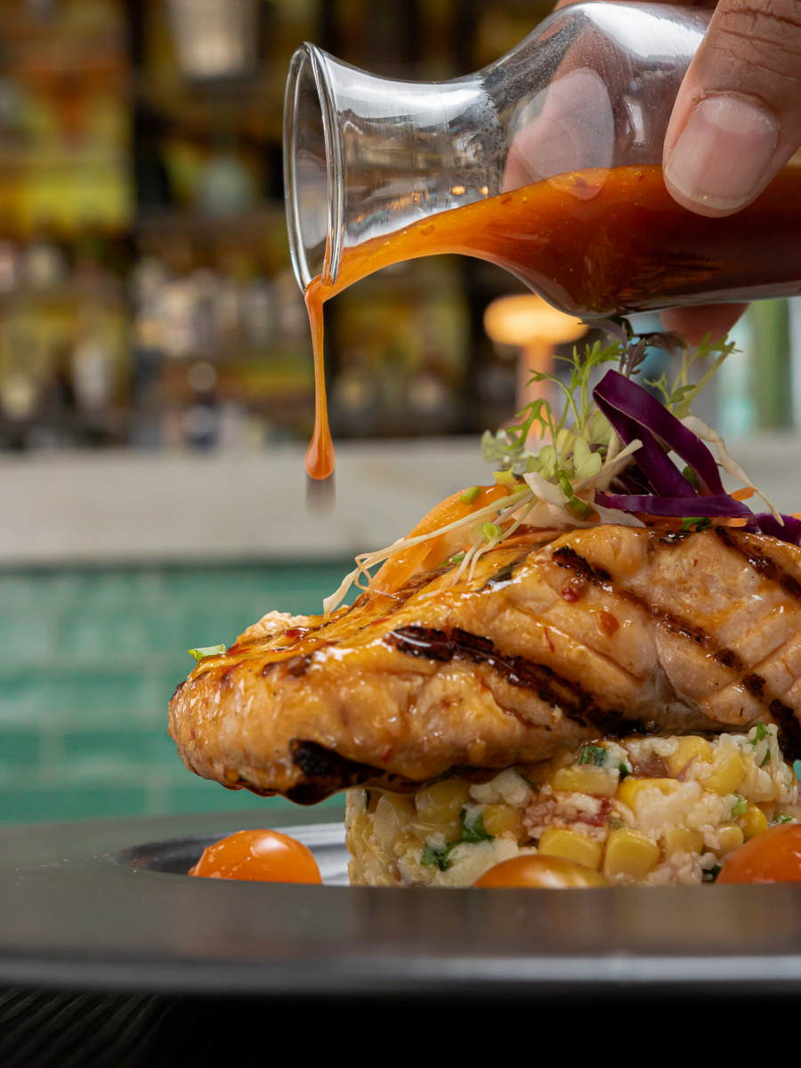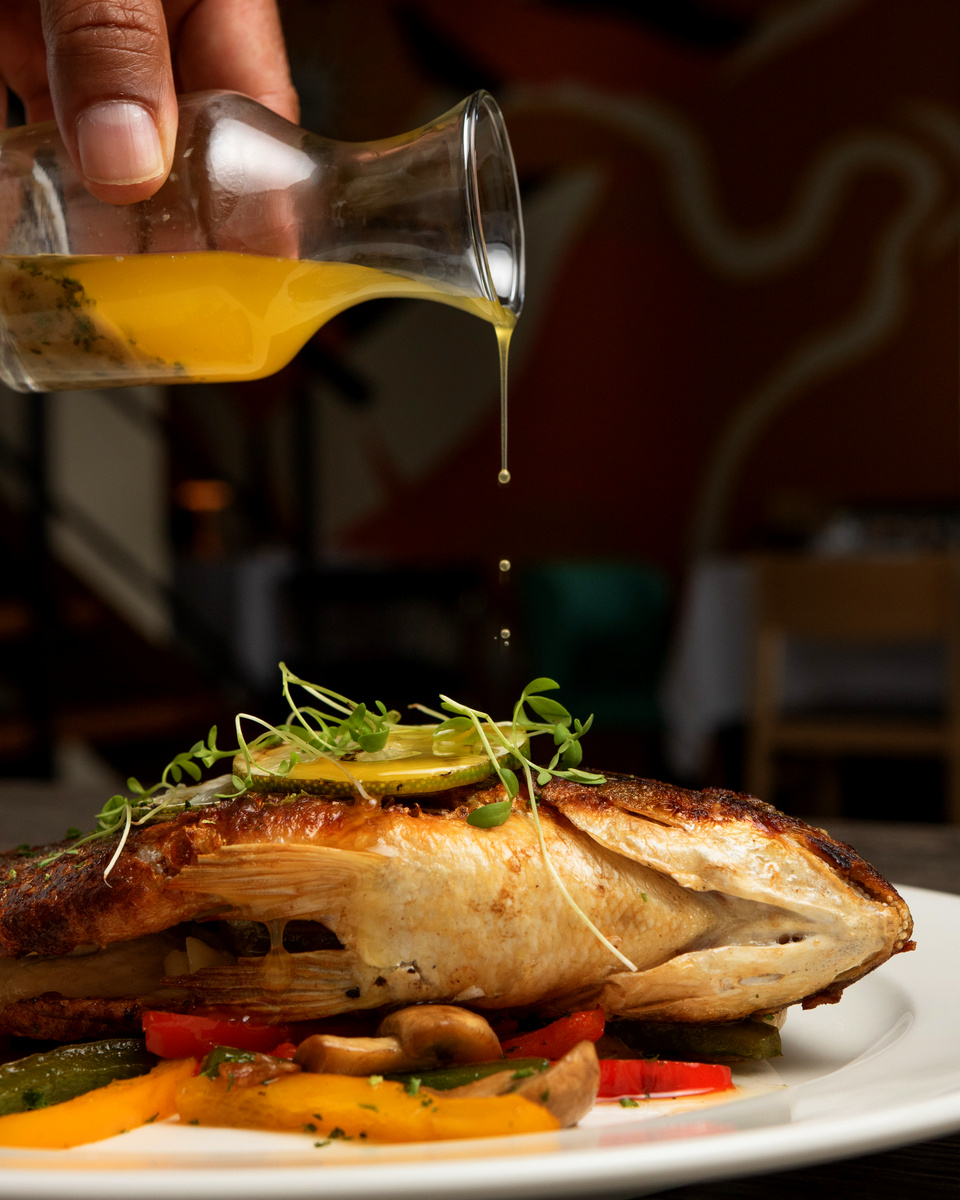 Esta mezcla armónica lleva en sus platos las carnes dominicanas, de pastoreo, a las cuales se les da en la cocina, un toque de baño de mantequilla, algo muy francés y se marca al estilo americano. Tienen también un T-Bone de cerdo, que es algo muy americanizado, pero con los animales de aquí, todo lo que tiene que ver con los platos del menú, se mezcla con elementos o productos locales o técnicas vanguardistas internacionales.