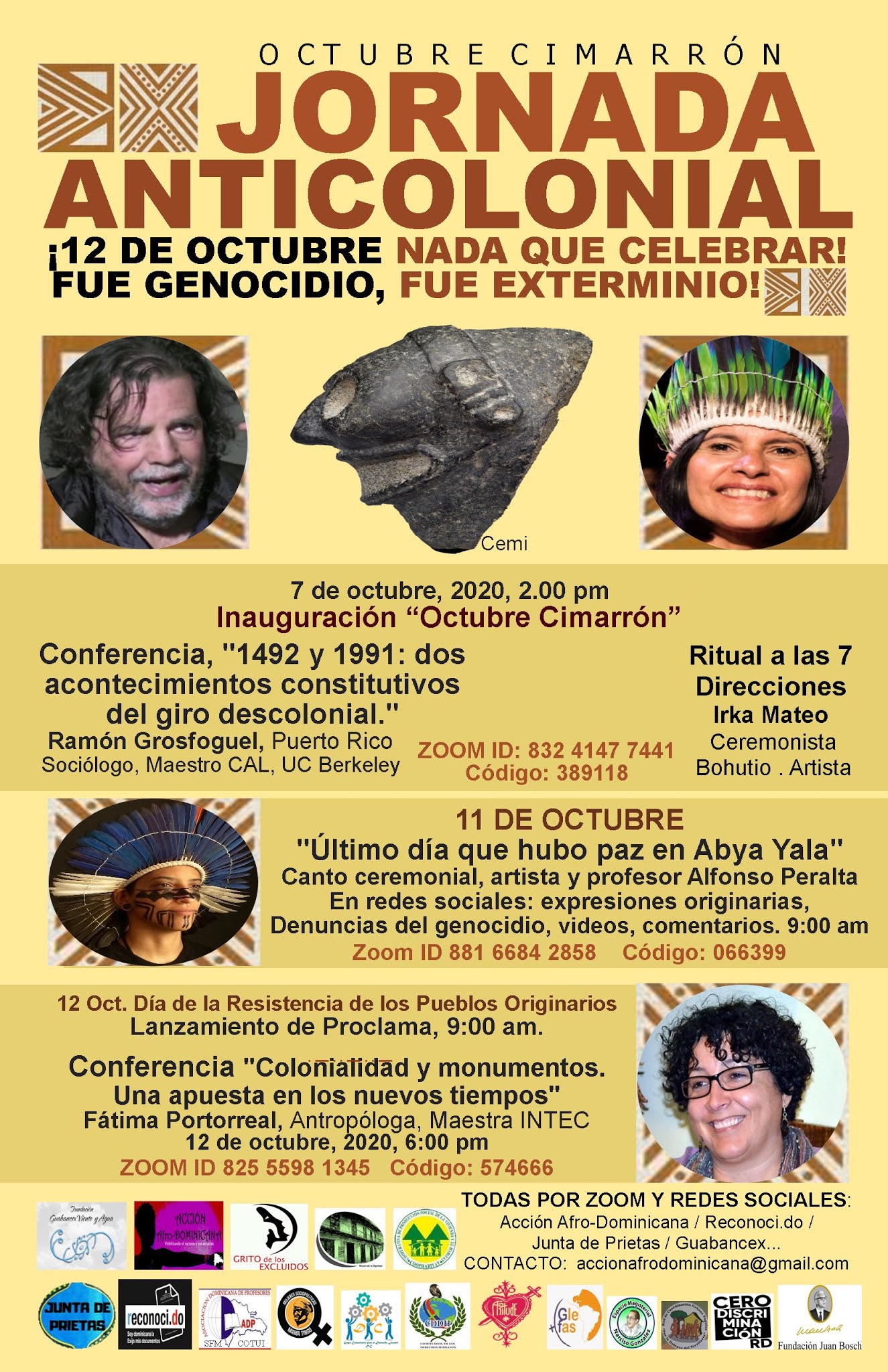 La actividad será realizada por la artista y ceremonista, bohutio, Irka Mateo. La conferencia «1492 y 1991: dos acontecimientos constitutivos del giro descolonial», estará a cargo del puertorriqueño Ramón Grosfoguel, perteneciente a la corriente internacional «del Giro Decolonial».
