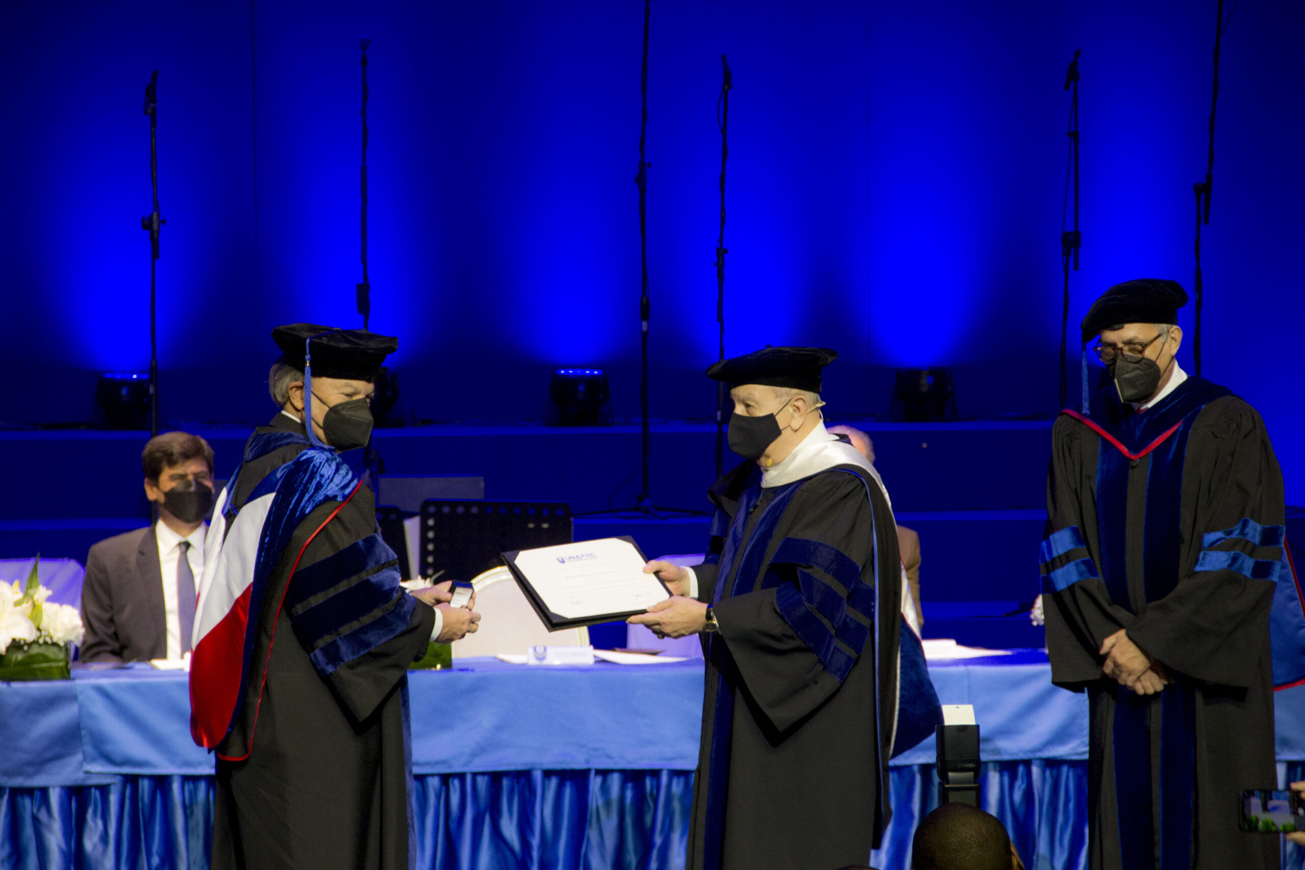 El acto de entrega del doctorado Honoris Causa tuvo lugar en el Teatro Nacional, y además de Frank Rainieri Marranzini, incluyó a Elena Viyella de Paliza, Manuel García Arévalo y María Amalia León Cabral.