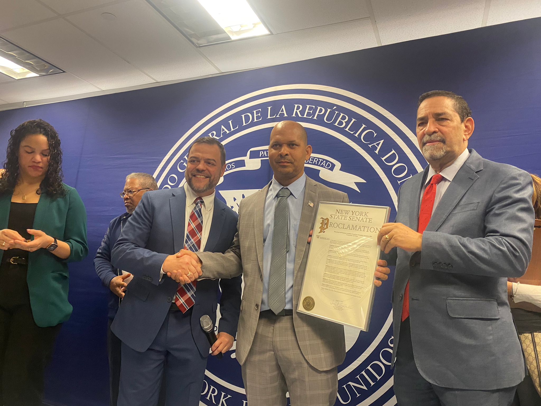 Por su parte, el Senador Luis Sepúlveda, único senador dominicano en el Estado de New York, reconoció la valentía y trayectoria del Sargento Gonell y expresó que el sargento es un ejemplo de dedicación, integridad y sacrificio, no solo por sus valientes actos durante el ataque al Capitolio sino también por su servicio a la nación en las fuerzas armadas.