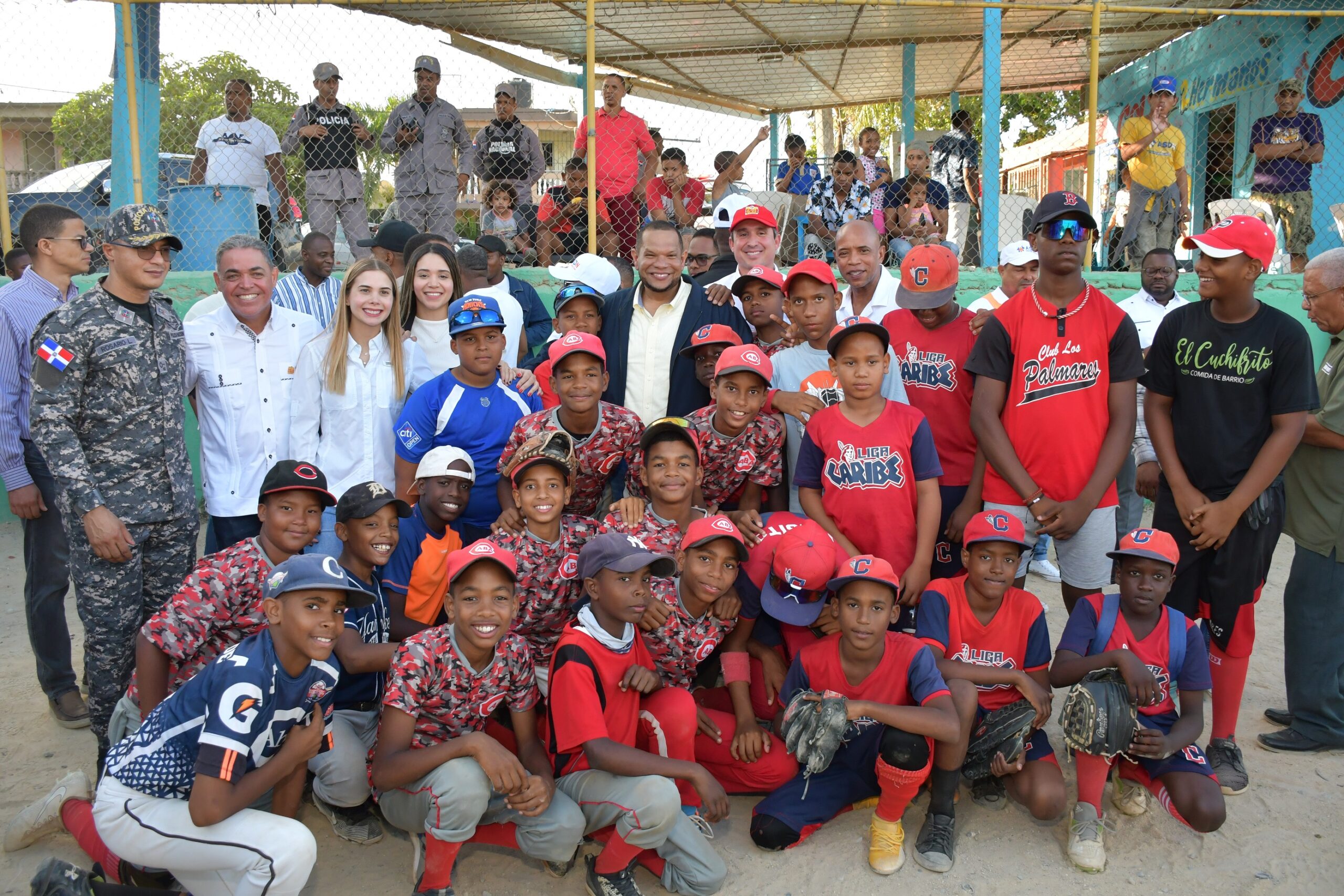 Directivos de Pollo Cibao, empresa avícola líder en el país, dieron inicio a la remodelación del play deportivo Los Caribes de Sabana Perdida, en Santo Domingo Norte, junto al alcalde de la zona, Carlos Guzmán, regidores y líderes comunitarios.