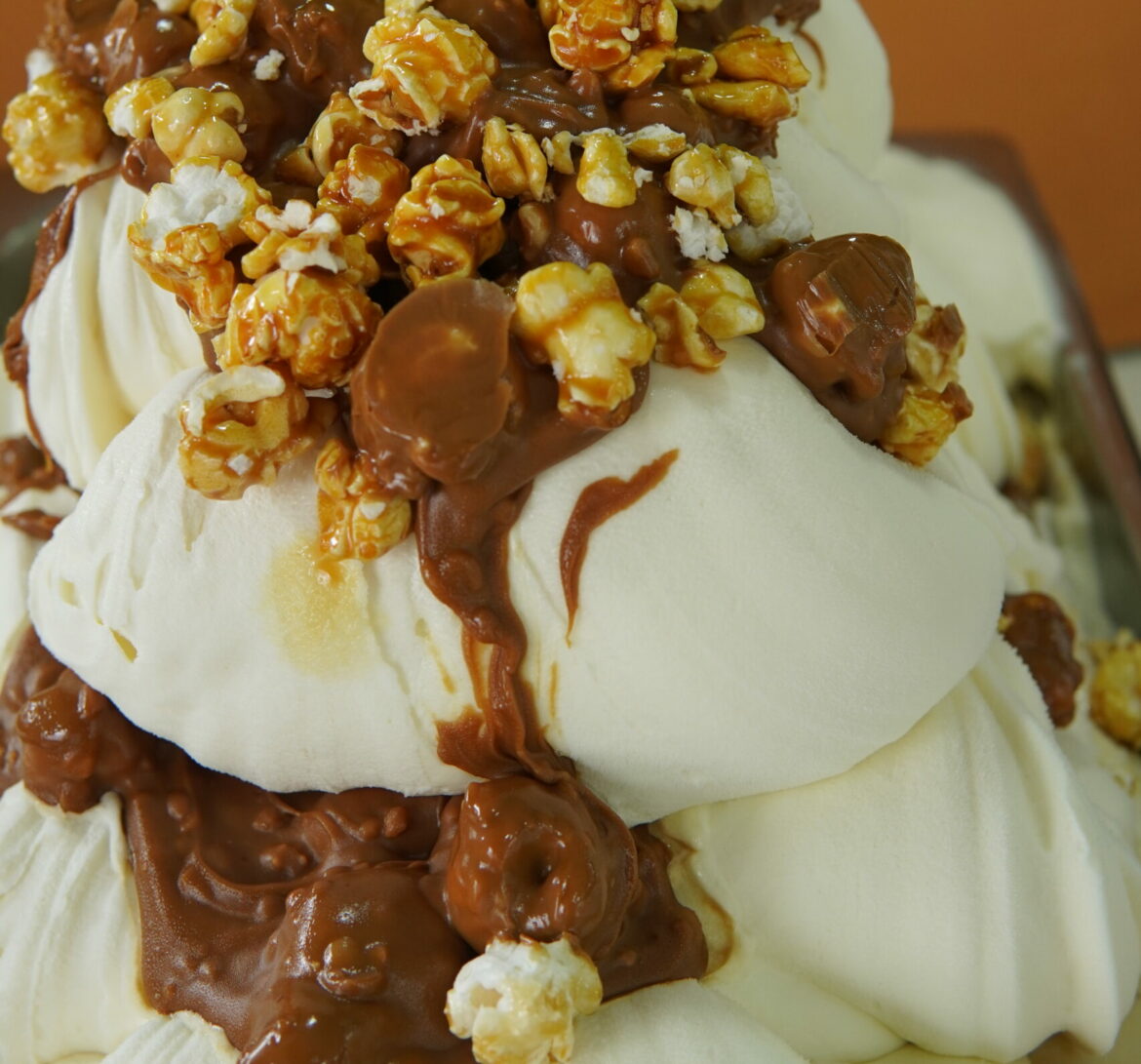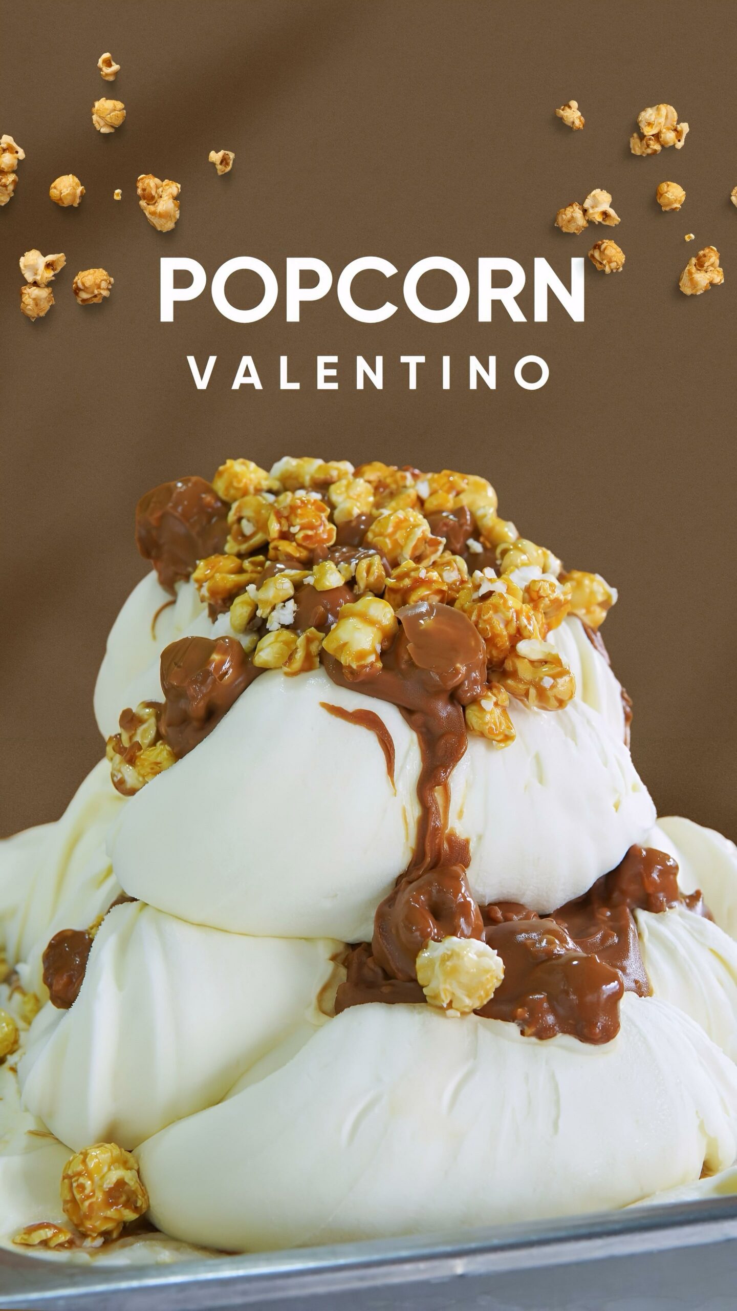 - Ingredientes estrella: Gelato base de vainilla artesanal, trozos crujientes de palomitas y rizos de caramelo salado.