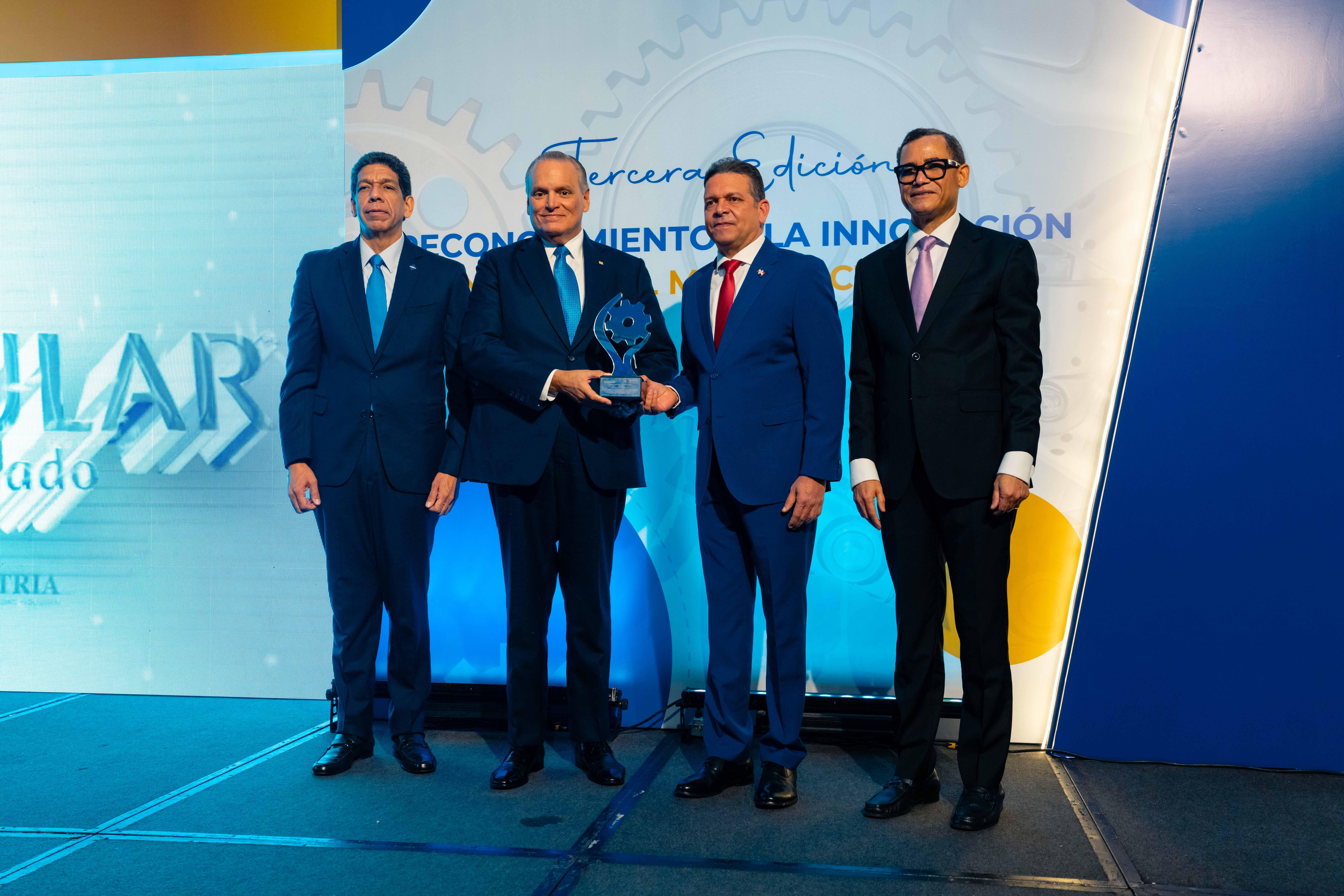 Santo Domingo, D.N. – El Banco Popular Dominicano fue distinguido con el Reconocimiento a la Innovación Industrial Manufacturera, en la categoría del sector privado, durante la tercera edición de este galardón entregado por el Centro de Desarrollo y Competitividad Industrial (Proindustria), con motivo de ser el principal financiador del sector industrial del país, canalizando el 39.4% del total de créditos dirigidos a esta actividad productiva.