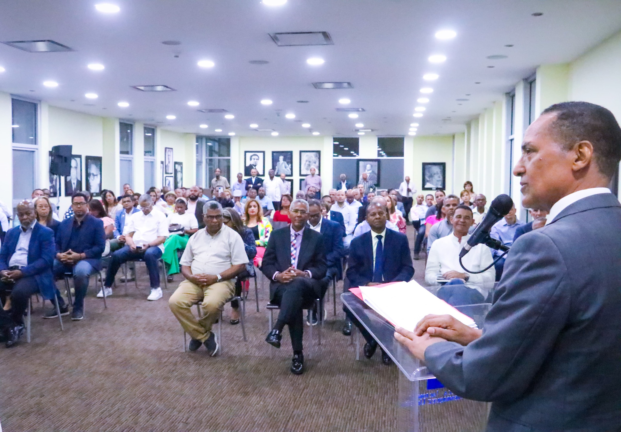 El acto contó con la distinguida presencia de personalidades del Colegio Dominicano de Ingenieros, Arquitectos y Agrimensores (CODIA), incluyendo a su presidente, el ingeniero electromecánico Carlos Mendoza, y al secretario general, George Richardson, entre otros miembros de la Junta Directiva.