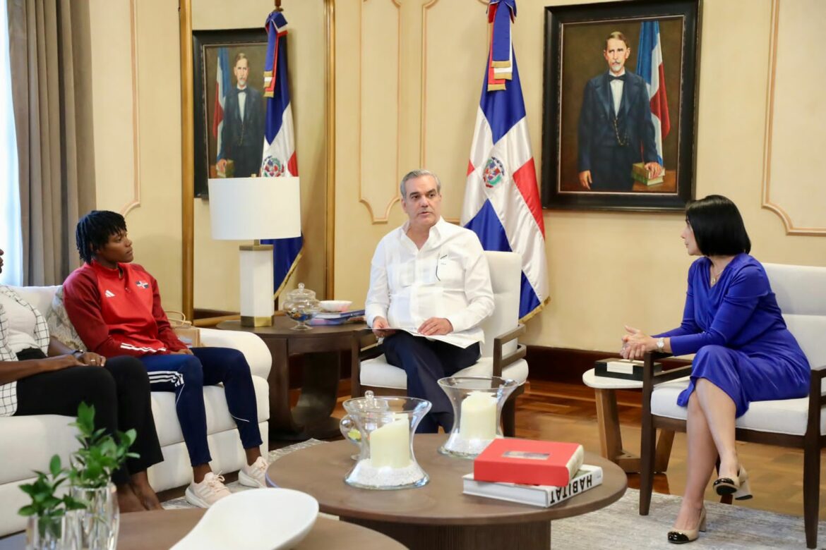 Santo Domingo. – El presidente Luis Abinader y la primera dama Raquel Arbaje recibieron en el Despacho Presidencial a la destacada atleta dominicana, Marileidy Paulino, campeona mundial en los 400 metros planos de atletismo. Durante la reunión, se discutieron temas relacionados con el desarrollo del deporte en la República Dominicana.