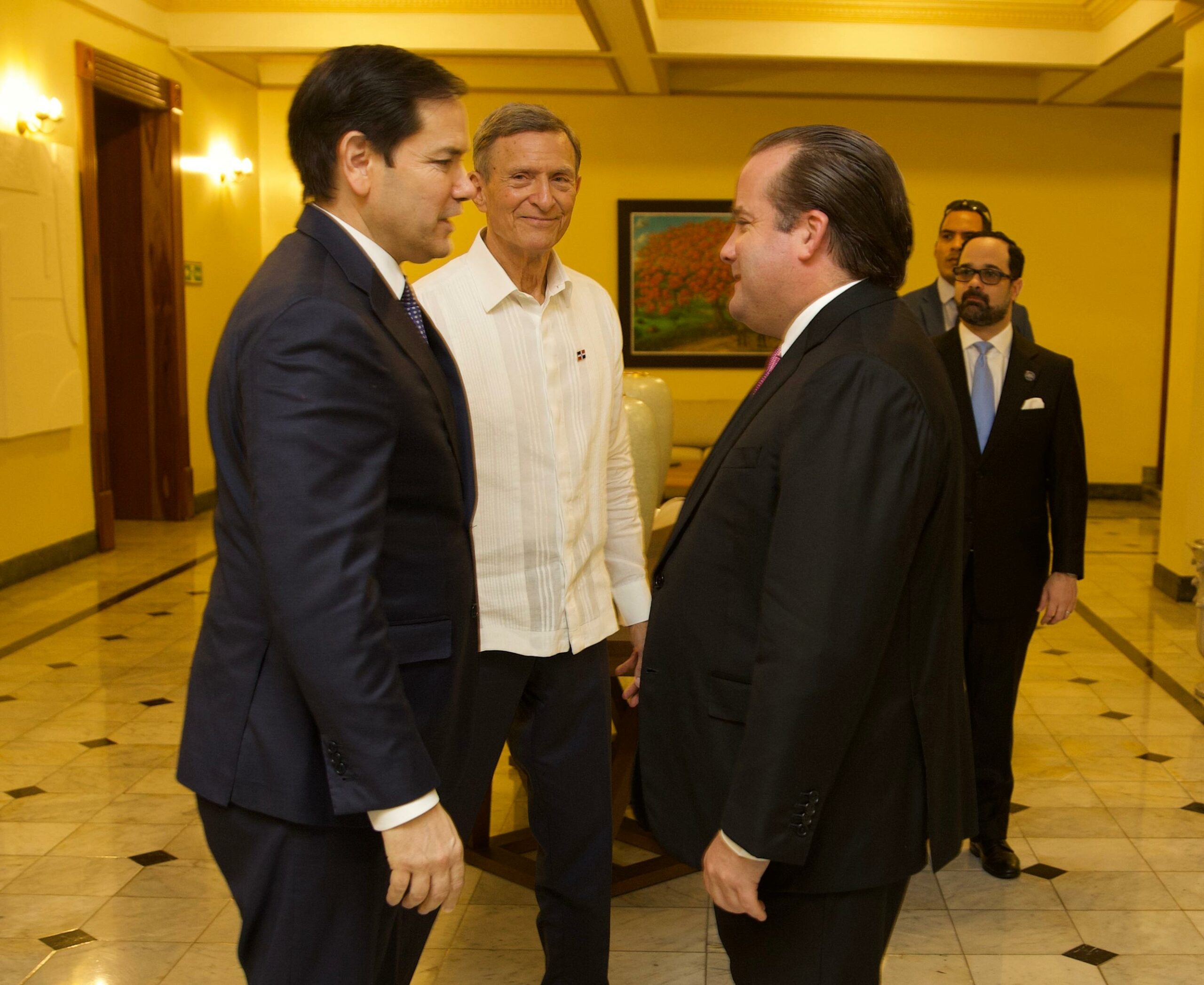 Mientras que, la comitiva Norteamericana la conforman la Encargada de Negocios de Embajada de los Estados Unidos, Patricia Aguilera; el consejero Michael Needham; el Alto Funcionario de la Oficina de Asuntos del Hemisferio Occidental, Michael Kozak; el director de Planificación de Políticas, Michael Anton; la vocera del Departamento de Estado, Tammy Bruce; la Asesora Principal para Asuntos del Hemisferio Occidental, Viviana Bovo y el anotador, Ali Nadir.