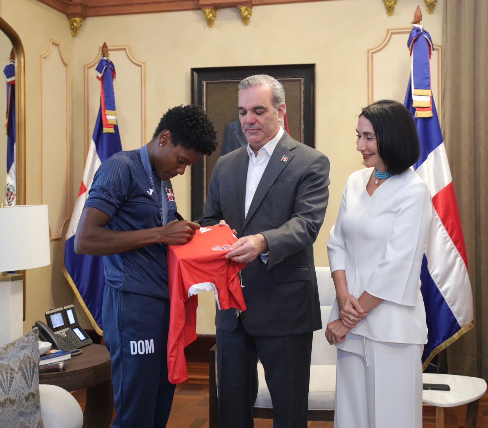 El presidente Luis Abinader recibió este lunes en el Palacio Nacional a los destacados atletas Marileidy Paulino, Yunior Alcántara y Cristian Pinales, quienes lograron medallas en los Juegos Olímpicos de París 2024, consolidando a la República Dominicana como una potencia emergente en el deporte mundial. Acompañado por la primera dama, Raquel Arbaje, y la vicepresidenta de la República, Raquel Peña, el mandatario elogió los logros de estos deportistas que llevaron el orgullo dominicano al escenario olímpico.