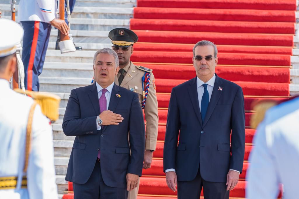 El presidente Luis Abinader recibió la mañana de este viernes a su homólogo colombiano Iván Duque Márquez, quien realiza una visita oficial al país.