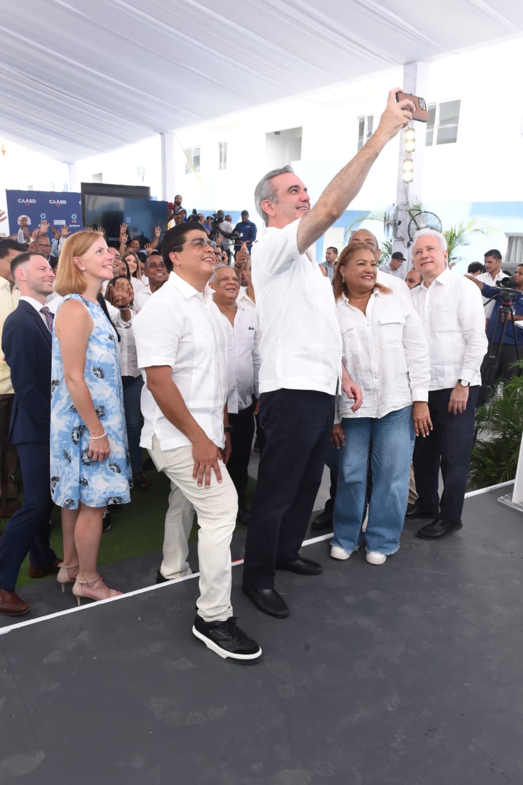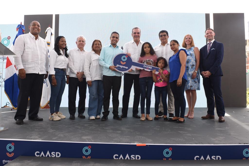 El presidente de la República, Luis Abinader, junto al director de la Corporación del Acueducto y Alcantarillado de Santo Domingo (CAASD), Felipe Suberví -Fellito- encabezó el acto de entrega de 200 apartamentos como parte del plan de saneamiento pluvial y sanitario definitivo de 5.4 kilómetros de la cañada Guajimía.