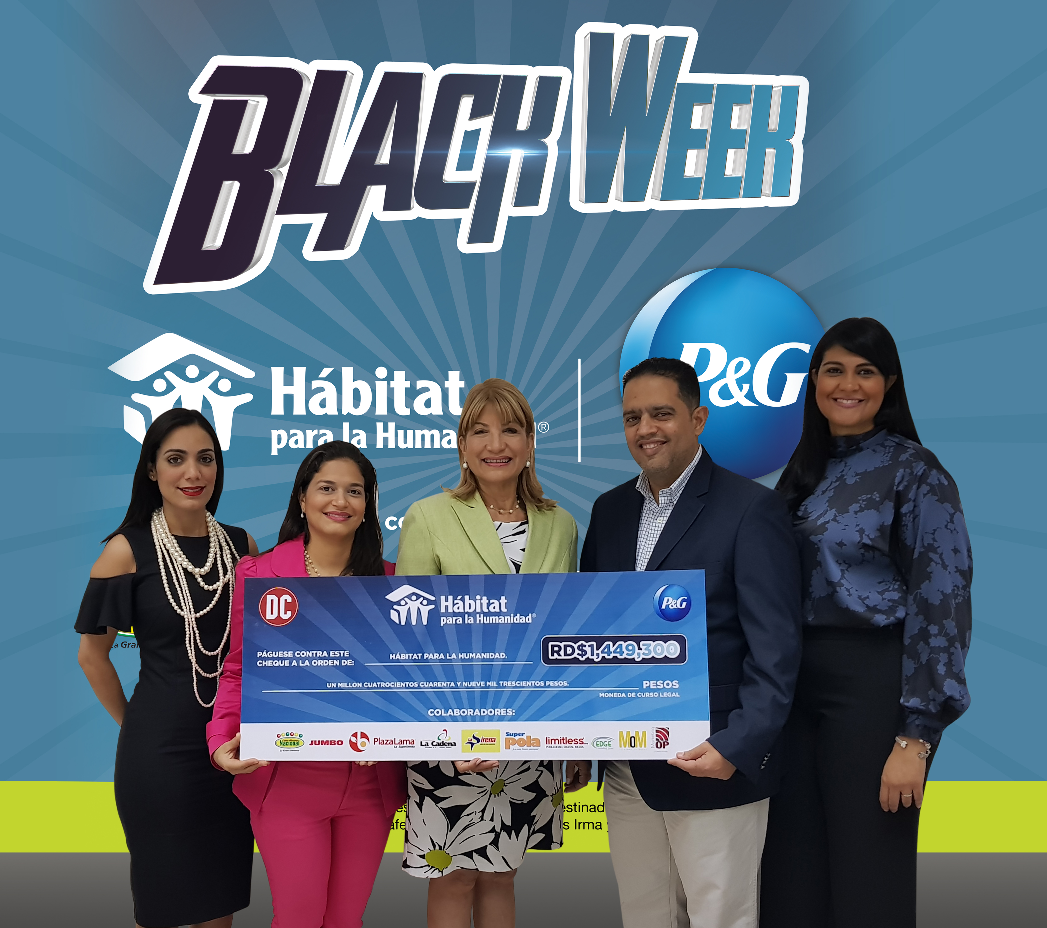 Ejecutivos de Distribuidora Corripio, en representación de las marcas de Procter & Gamble que comercializan en el país entregaron la donación correspondiente al 5% de las ventas generadas durante su actividad “Black Week” en el mes de noviembre a la entidad no lucrativa Hábitat para la Humanidad.