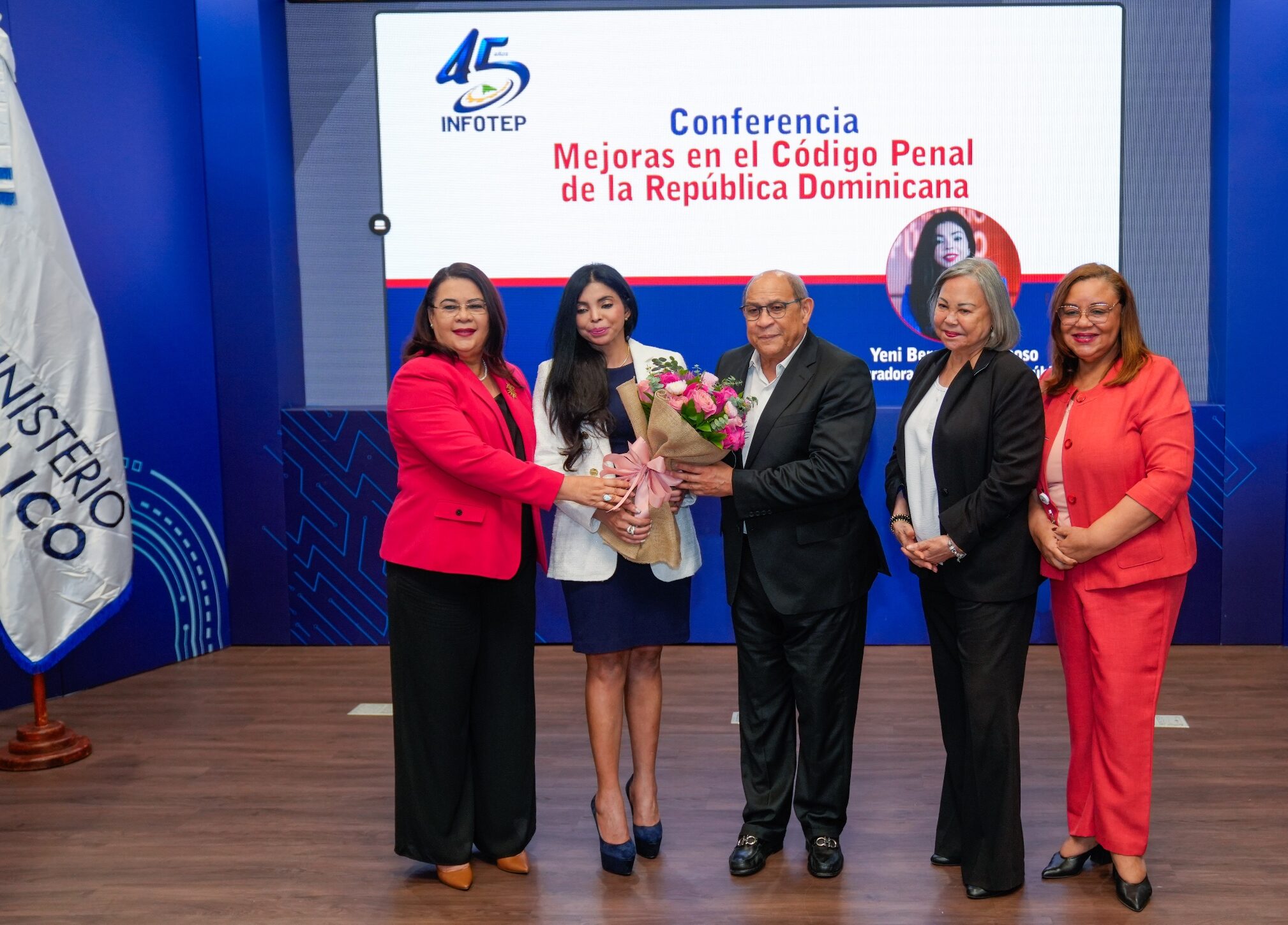 SANTO DOMINGO. – En el marco del 45 aniversario del Instituto Nacional de Formación Técnico Profesional (INFOTEP), la procuradora general de la República, Yeni Berenice Reynoso, ofreció la conferencia “Mejoras en el Código Penal de la República Dominicana”, dirigida a colaboradores e invitados institucionales.