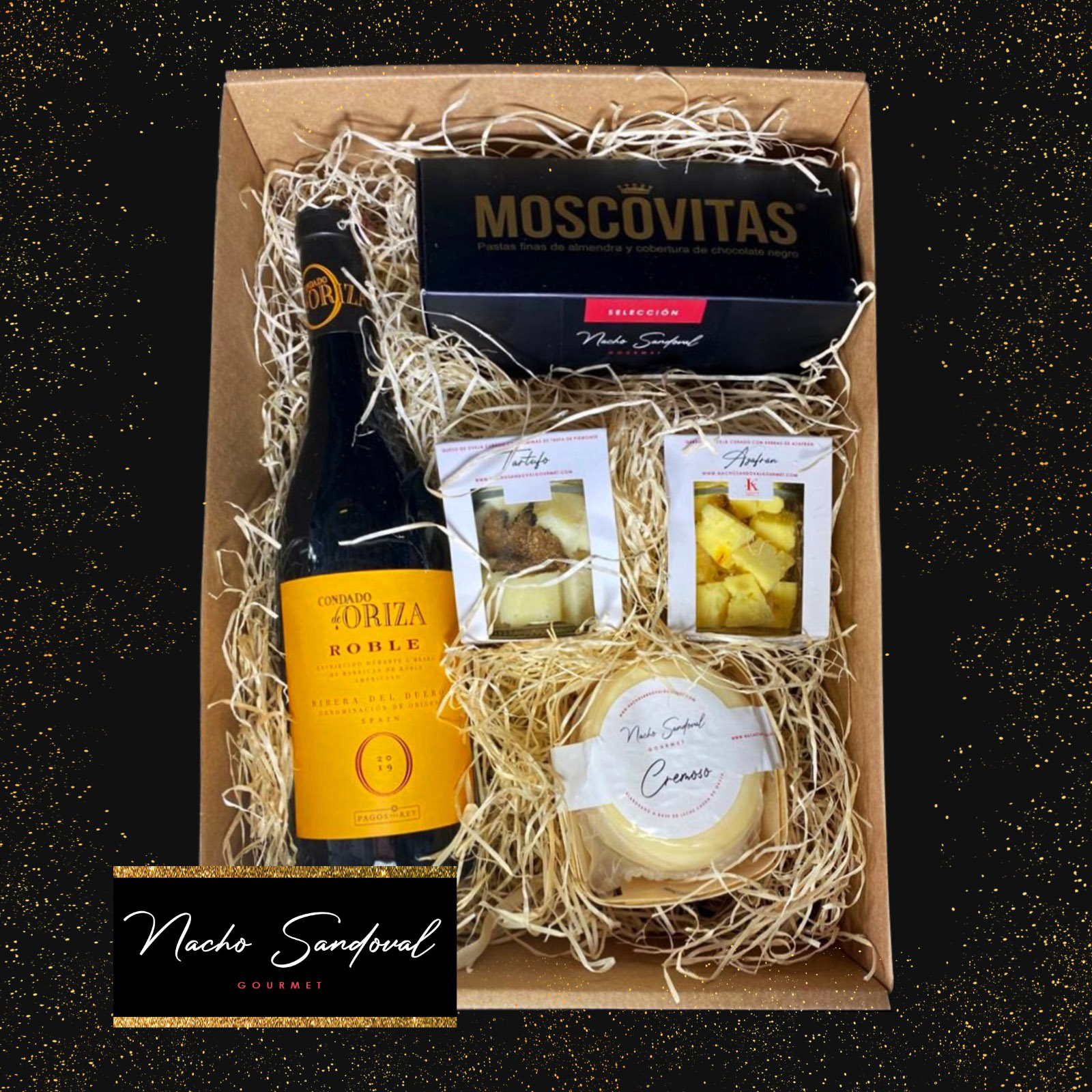 A la familia de productos iniciales, como los chuletones o entrecots de Ternera de Aliste IGP (Zamora), los asados (cochinillo y cordero lechal), fáciles de preparar que solo necesitan el último toque en casa para consumir, o al Bacalao de autor, selección gourmet de El barquero, se han incorporado nuevos productos gourmet con marca propia, Nacho Sandoval Gourmet, como la Torta de queso de oveja cremoso, 250g. Tarro de queso de oveja curado, partido a mano, con láminas de trufa de Piamonte, de 100g. Tarro queso de oveja curado, partido a mano con, hebras de Azafrán DO La Mancha, de 100g. Dos Patas de pulpo, cocido en su jugo, 300g-400g. Una pata de pulpo, cocido en su jugo, 300g-400g. Otro recién llegado a su tienda online son las Moscovitas de Rialto, finas pastas de almendra marcona y cobertura de chocolate con leche. Son elaboradas, una a una, de manera totalmente artesana siguiendo la receta original de los antiguos maestros confiteros de Rialto.