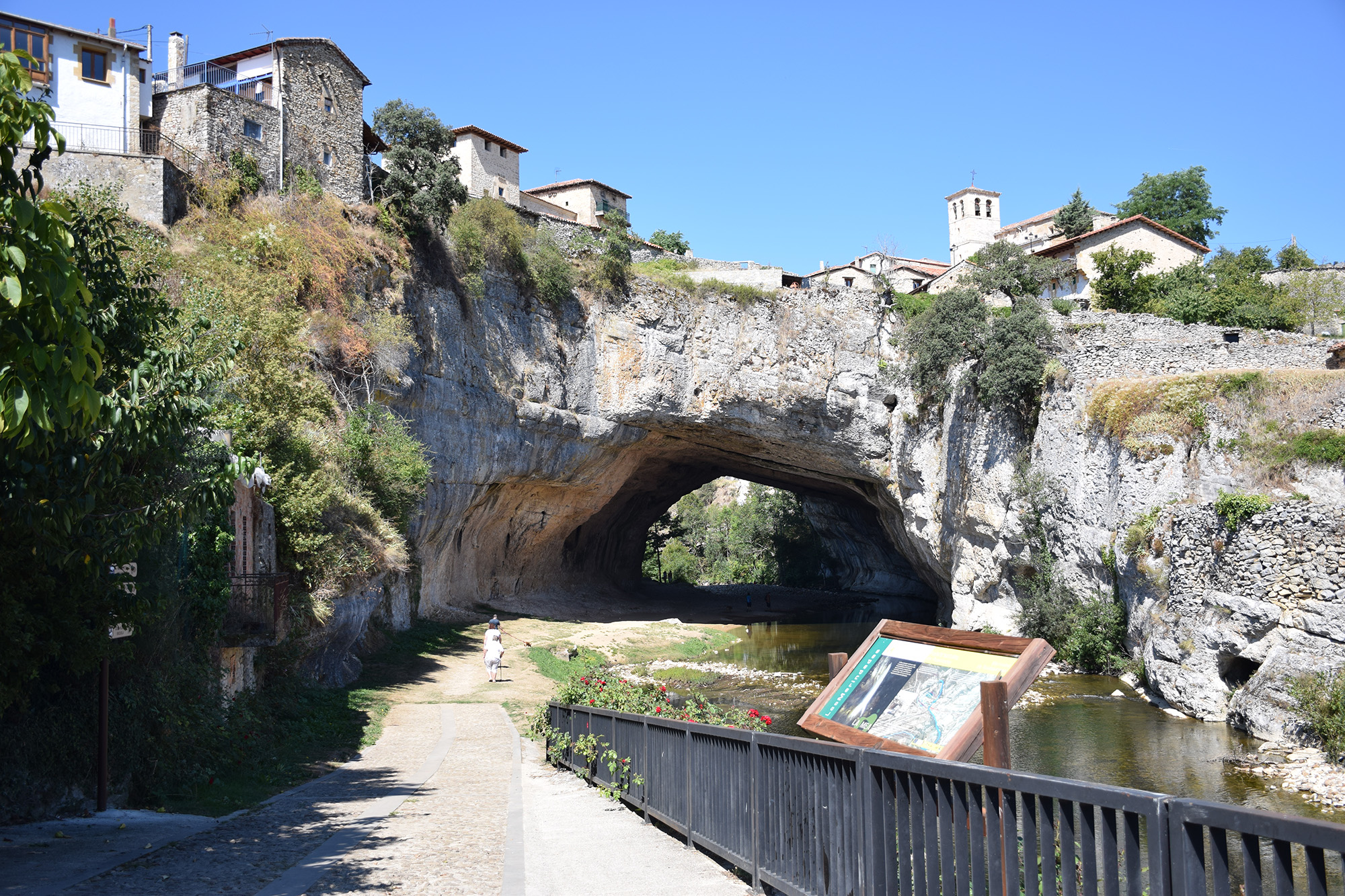 Esta pequeña localidad de la comarca de las Merindades en Burgos, con poco más de 50 habitantes, se asienta sobre un puente de piedra natural, creado por el río Nela en los últimos 90 millones de años, aunque los vecinos hablaban de una construcción ideada por el mismo Dios, como reza su nombre: Puentedey.