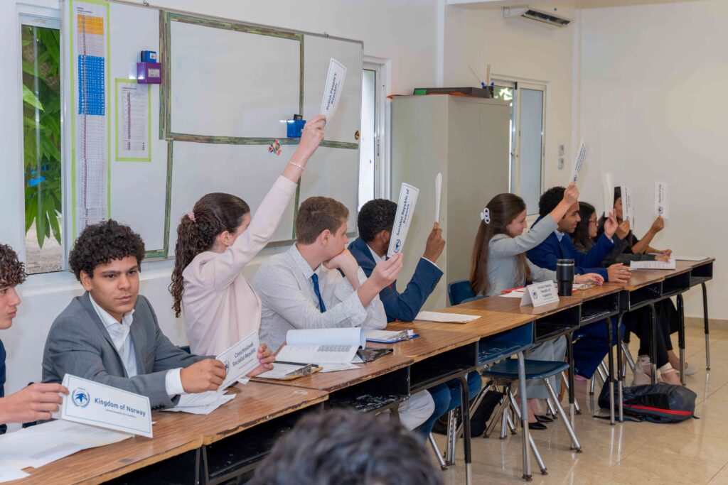 Bajo el eje temático “Impacto Social: Derechos Humanos y Sociedad”, el evento reunió a más de 320 estudiantes de 7mo a 12vo grado, junto a delegaciones de siete centros educativos, quienes participaron en dinámicas de debate enfocadas en problemáticas globales de alto impacto.