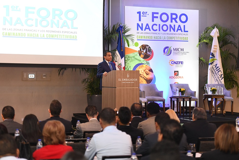 En el foro se abordó el contexto en que se desenvuelven las zonas francas y las empresas bajo regímenes especiales. Planteó la importancia de fortalecer la formación del capital humano de modo que pueda ser capaz de agregar valor nacional a los bienes y servicios destinados al mercado internacional.