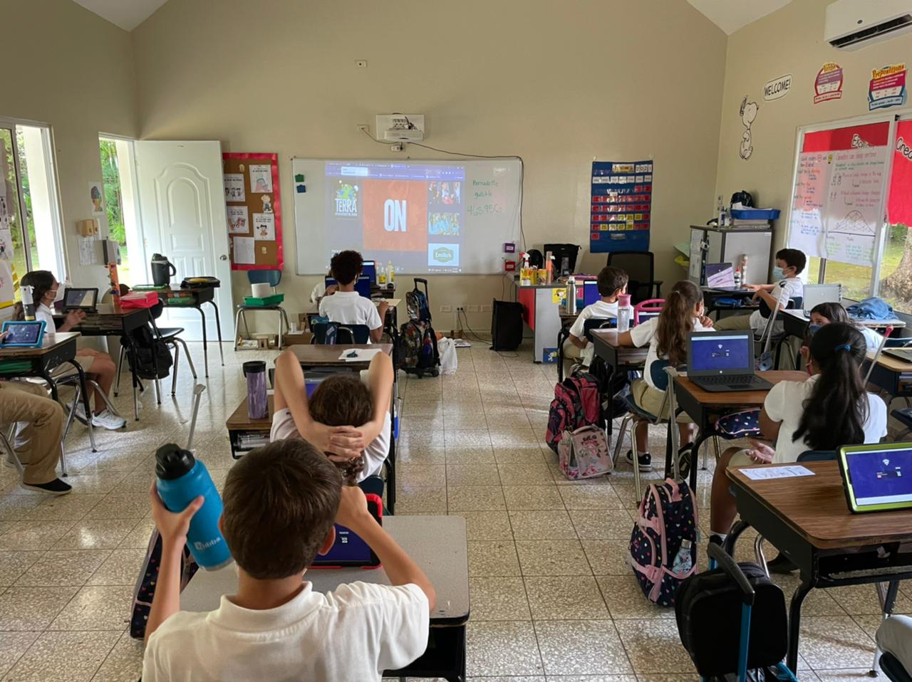 Adriana Álvarez Cadenas, Gerente de Mercado de la empresa, señaló que en las mismas 1,800 estudiantes de 14 centros escolares de la República Dominicana se conectaron simultáneamente en una Experiencia Interactiva llamada TERRA CLASSROOM ROYALE, Los participantes vieron contenido sobre Medio Ambiente mientras jugaban vía sus dispositivos (Tablets-Laptops-Celulares)