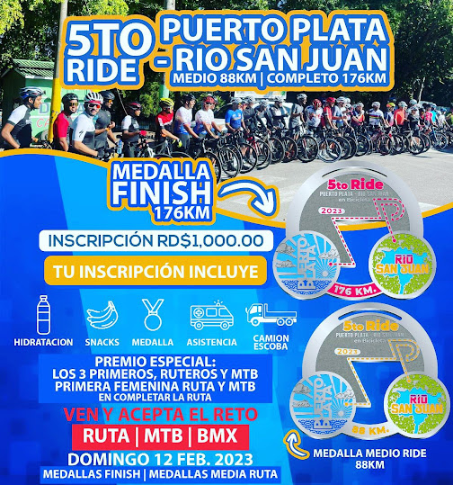 En esta oportunidad, un grupo de entusiastas pedalistas de la parte Norte del país realizará el domingo 12 de febrero el Quinto Ride Puerto Plata-Río San Juan, con un tramo de 176 kilómetros y otro de 88 km.