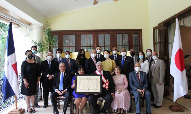 El embajador de Japón en el país, Makiuchi Hiroyuki reconoció con el “Gran Cordón de la Orden del Sol Naciente” al ex embajador dominicano Héctor Domínguez Rodríguez, por contribuir al fomento de las relaciones de amistad y cooperación entre ambas naciones.