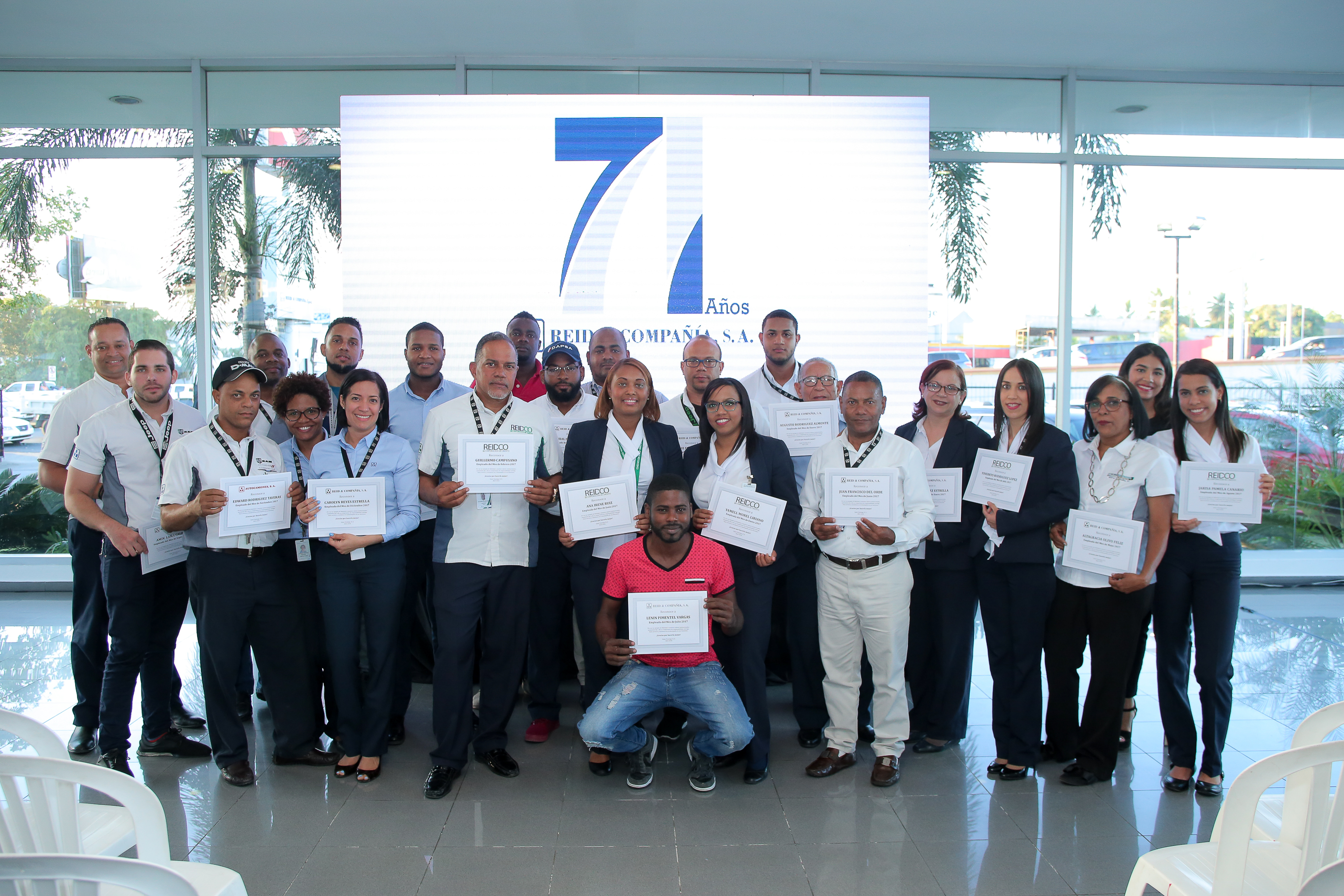 El acto de celebración estuvo encabezado por los señores Clara Reid de Frankenberg, Presidenta, Georgia Anne Reid, Vice Presidenta, Diana Ramos, Directora Ejecutiva de la División Automotriz y Donald J. Pimentel Reid, Director de la División Construcción, Agrícola e Industrial, y demás ejecutivos de Reid & Compañía, S. A.