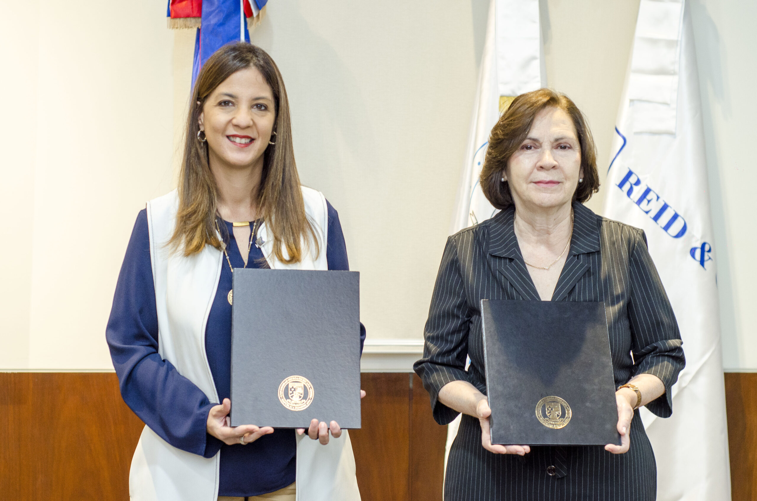Participaron en las firmas la señora Georgia Anne Reid, Vicepresidenta; Clara Reid de Frankenberg, Presidenta; Diana Ramos, Directora Ejecutiva de la División Automotriz; Donald Pimentel, Director de la División Construcción, Agrícola e Industrial; Clara Santa Cruz, Directora de Desarrollo Humano, y Michelle Geara, Gerente de Mercadeo. Por UNIBE participaron Odile Camilo, Rectora; Loraine Amell, Vicerrectora de Vinculación e Internalización; Grace Cochón, Vicerrectora Administrativa; José Martín Morillo, Director de Mercadeo Institucional, y Jeimie Reyes, Gerente de Comunicación Corporativa y Protocolo.