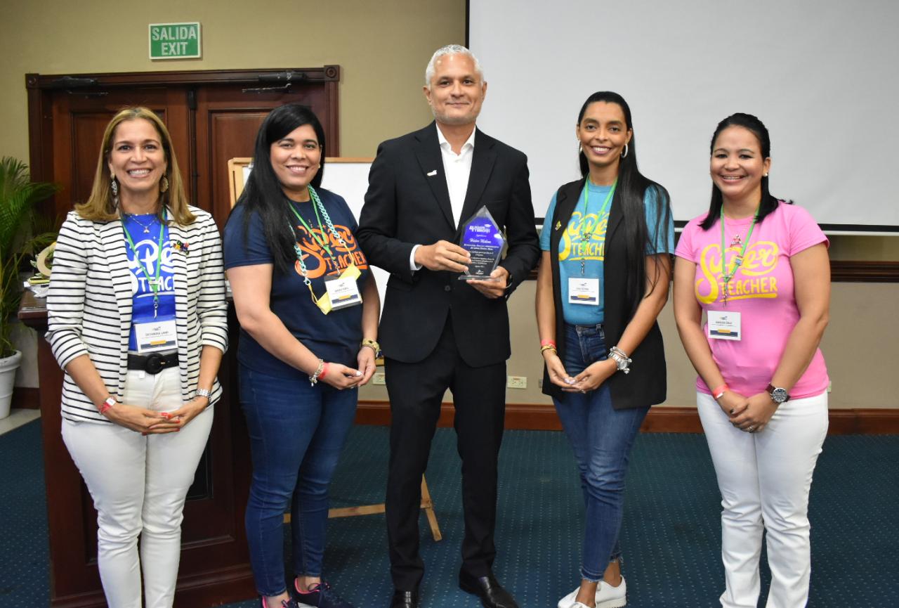 En este congreso, 4Magisterio entregó placas de reconocimiento por sus aportes a la educación a María Nelly Ramírez, encargada de colegios privados del distrito 15-03 del Ministerio de Educación (Minerd); a Raquel Garrido, fundadora y directora del colegio Primi Passi; a Wara González, directora de Kids Create y American School of Santo Domingo; y Héctor Molina, director administrativo del Colegio Jaime Molina Mota.