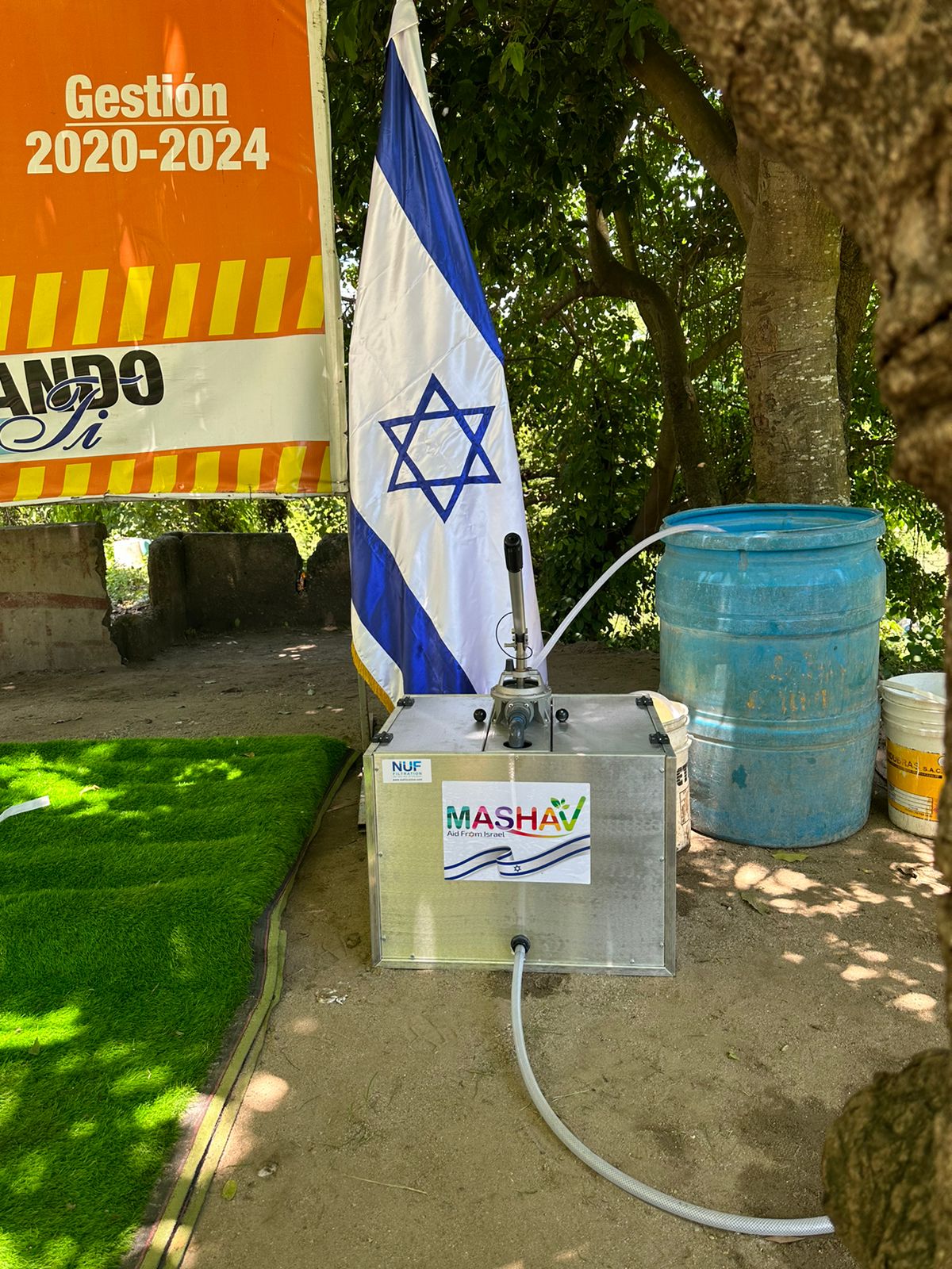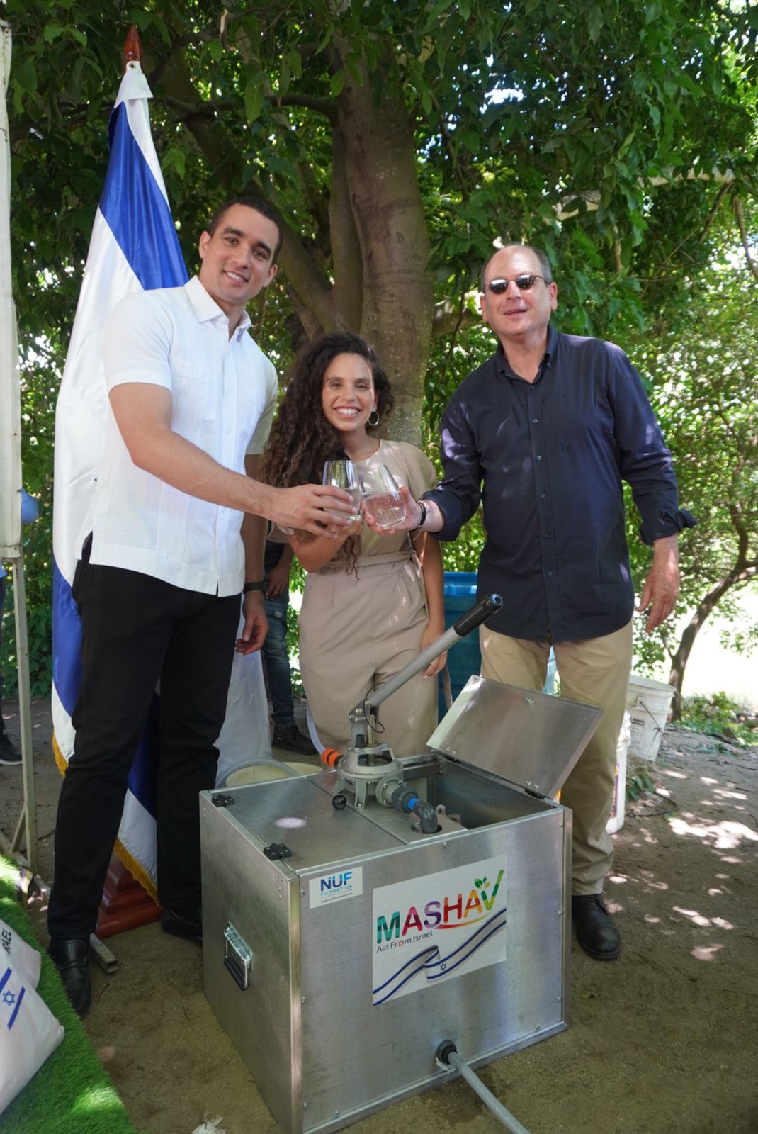 La Embajada de Israel en la República Dominicana donó en la mañana de hoy el dispositivo de filtrado NUF, al sector Camungui, en Nigua. El artefacto facilitará que los habitantes puedan tener acceso a agua potable, filtrando hasta 500 litros de agua por hora del río Nigua.