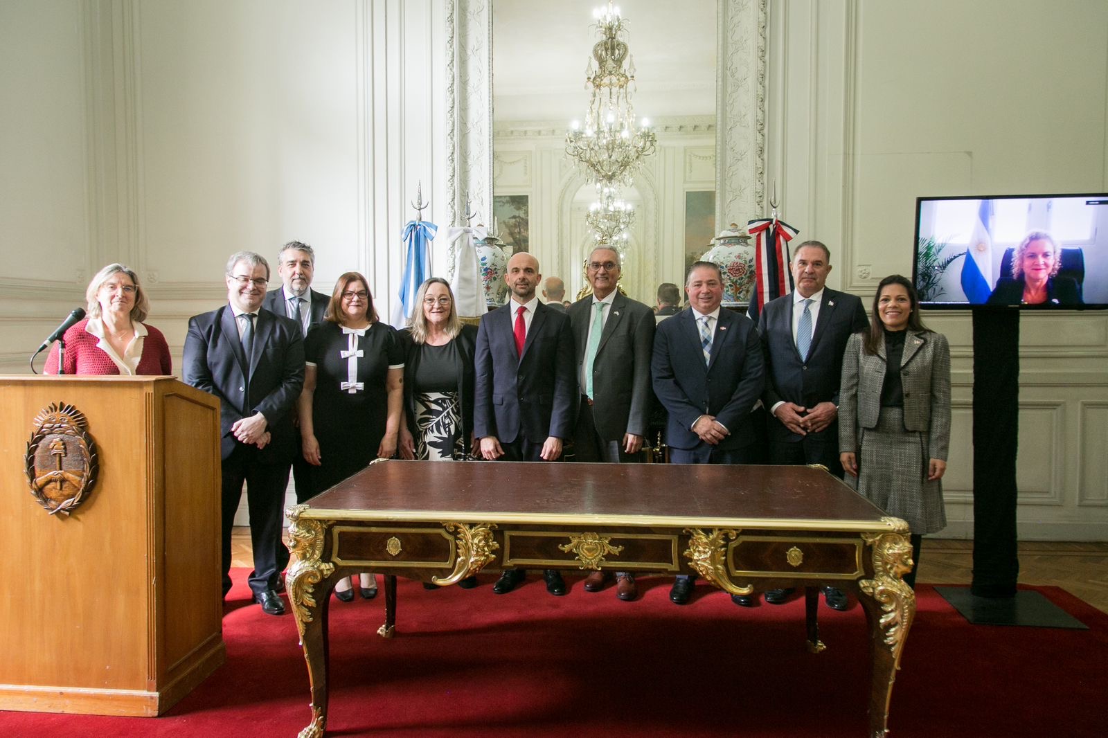 El acto de firma se llevó a cabo en el Palacio San Martín, sede de la cancillería argentina, con la participación de Héctor Porcella, presidente de la Junta de Aviación Civil dominicana, y Franco Mogetta Prevedello, secretario de la Autoridad Nacional de Aviación Civil (ANAC) de Argentina, entre otras autoridades de ambas delegaciones.