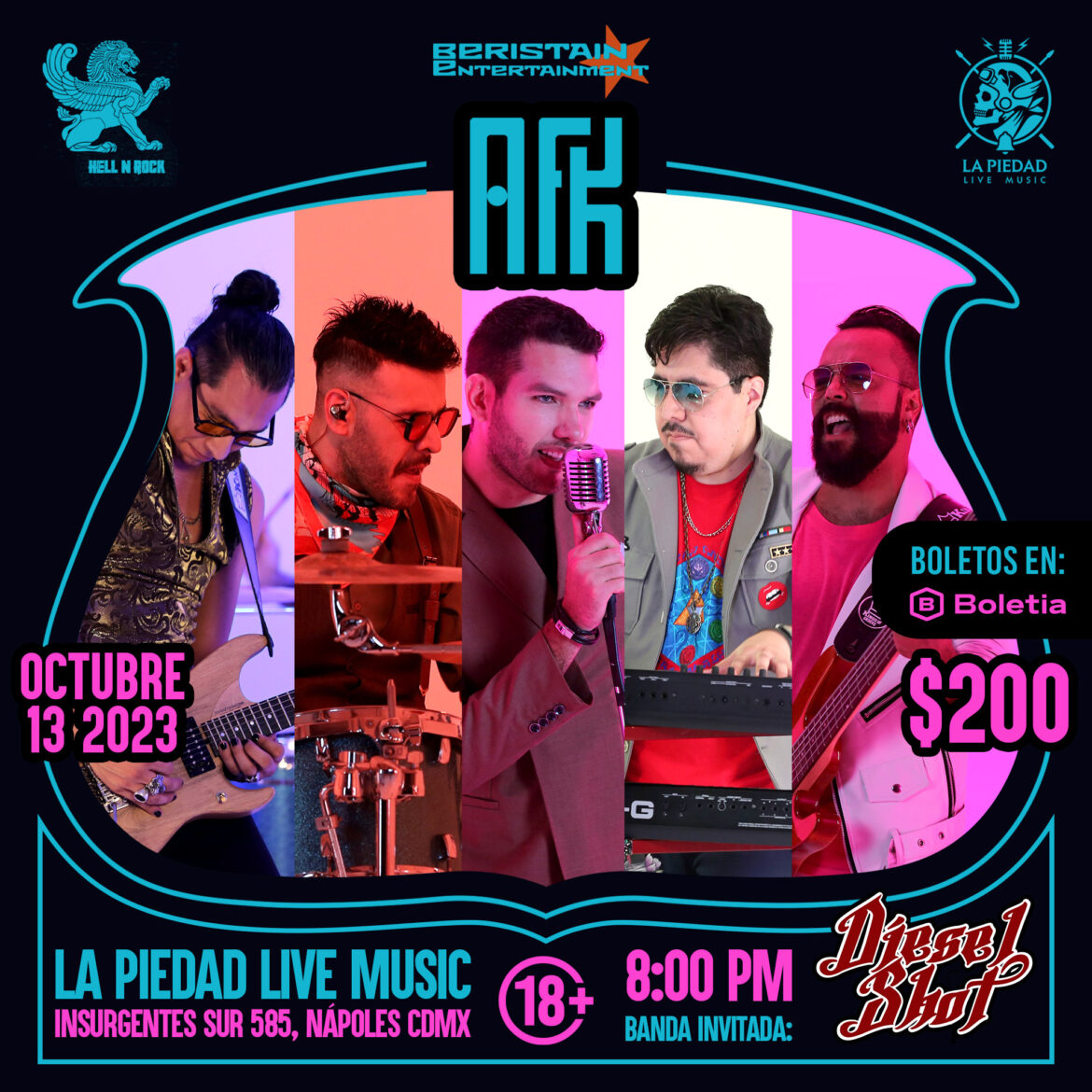 No te pierdas la presentación en vivo de su nuevo material el 13 de octubre en La Piedad Live Music, Ciudad de México. Los boletos están disponibles a través de boletia en el siguiente enlace: Boletos AFK en Concierto.