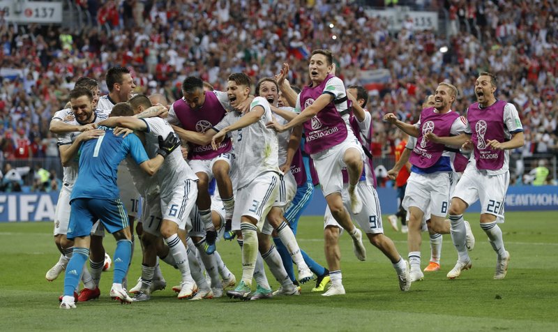 Igor Akinfeev tapó remates con las manos y con los pies para catapultar a Rusia a los cuartos de final de la Copa del Mundo, imponiéndose el domingo 4-3 en una definición por penales.