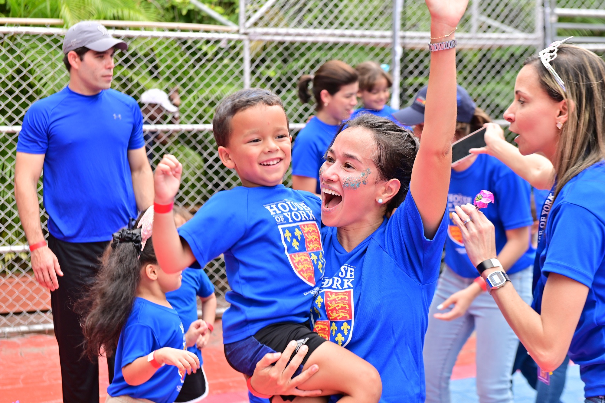 El evento, que se realiza desde hace 37 años, reunió a participantes divididos en dos equipos: el equipo Rojo, Casa de Lancaster, y el equipo Azul, Casa de York. Durante todo el día, las instalaciones del colegio vibraron con diversas actividades recreativas y deportivas, incluyendo carreras de relevos, competencias en sacos, baile del aro, juegos de pañuelo, y actividades inflables.